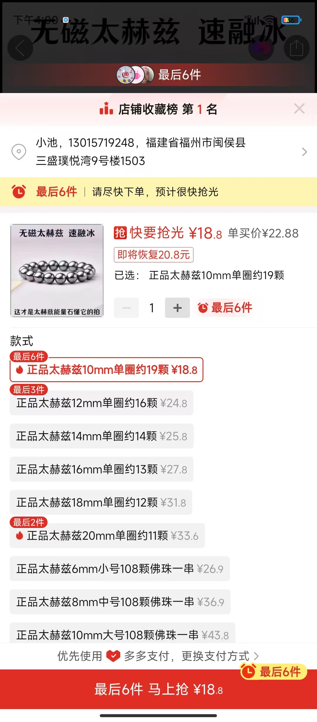高** 搶購成功 17分鐘前