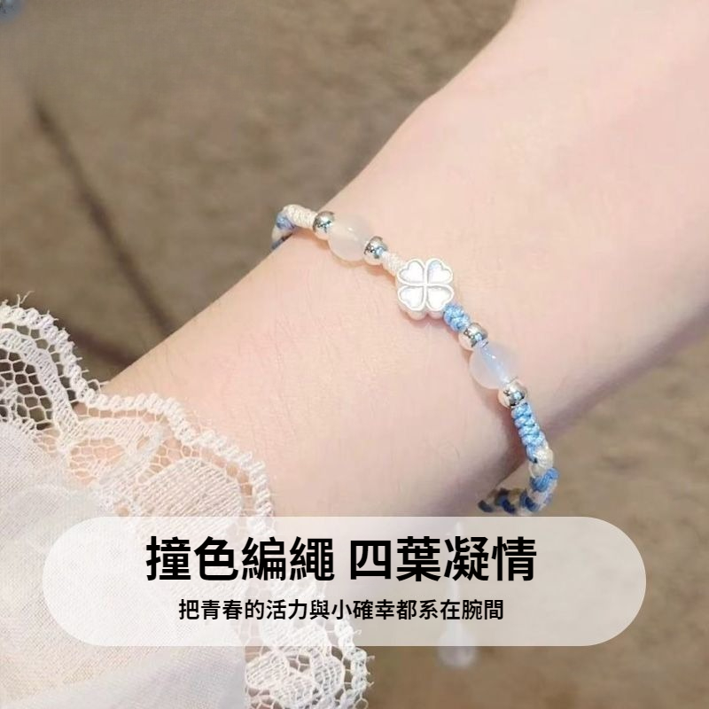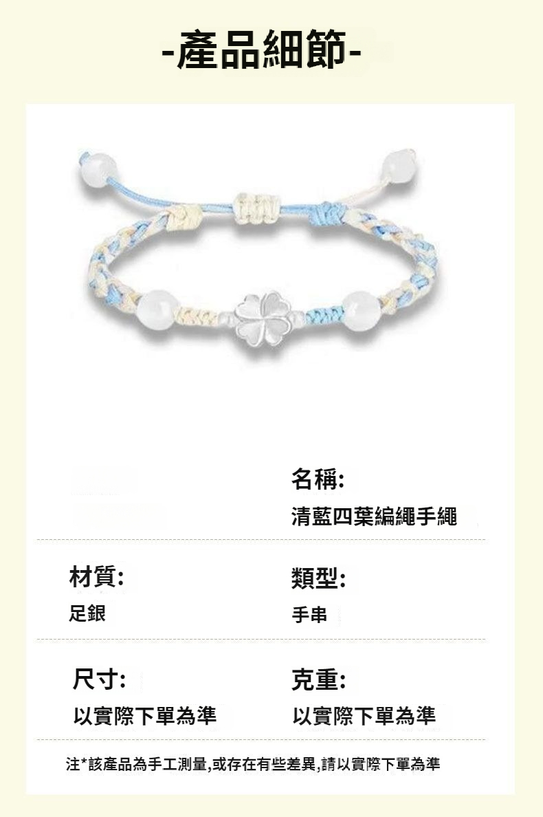 四葉草手繩-藍色【鴻運禮盒+銀飾布】