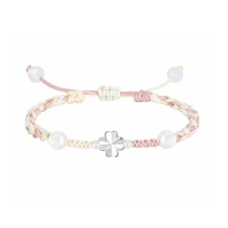 四葉草手繩-粉色【鴻運禮盒+銀飾布】