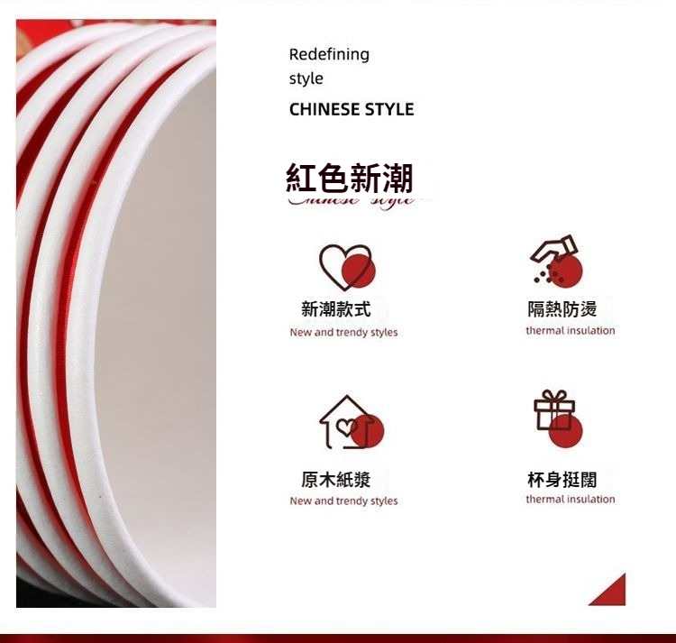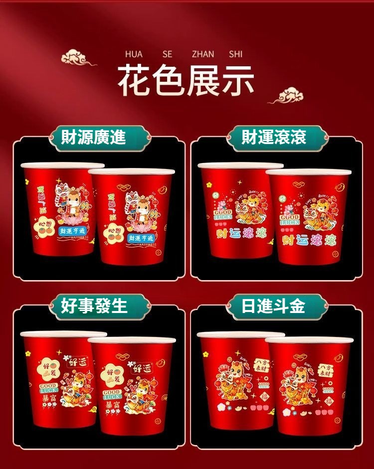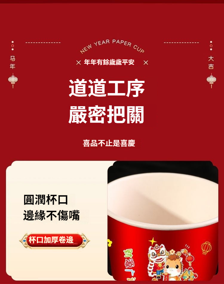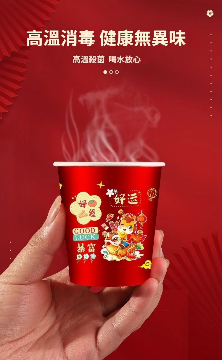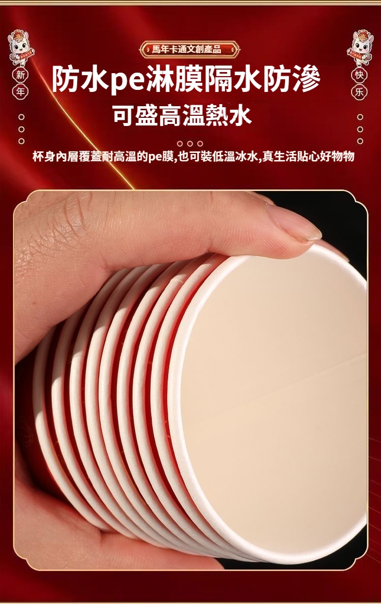 2026新款馬年一次性紙杯紙容器春節喜慶全紅加厚家用耐高溫防燙