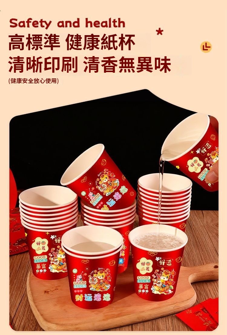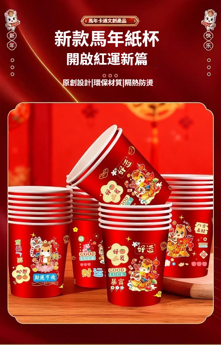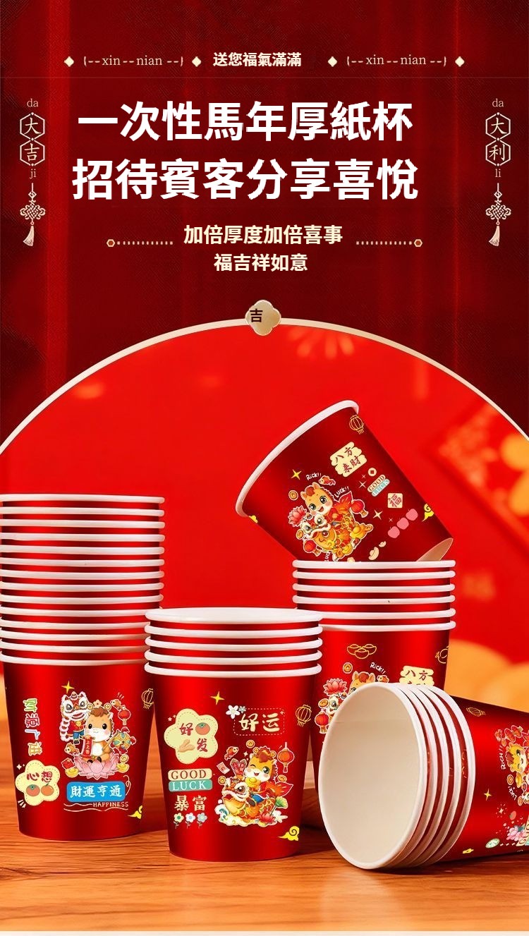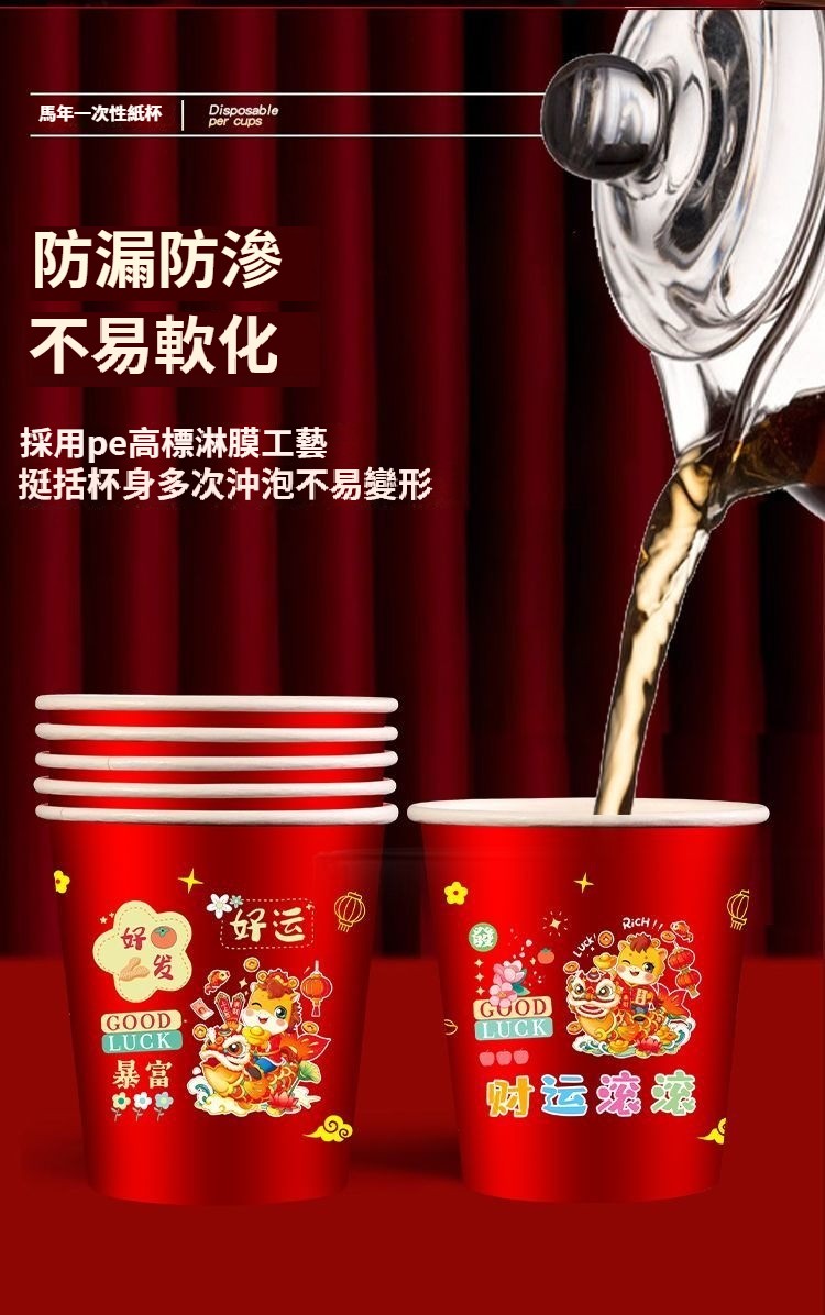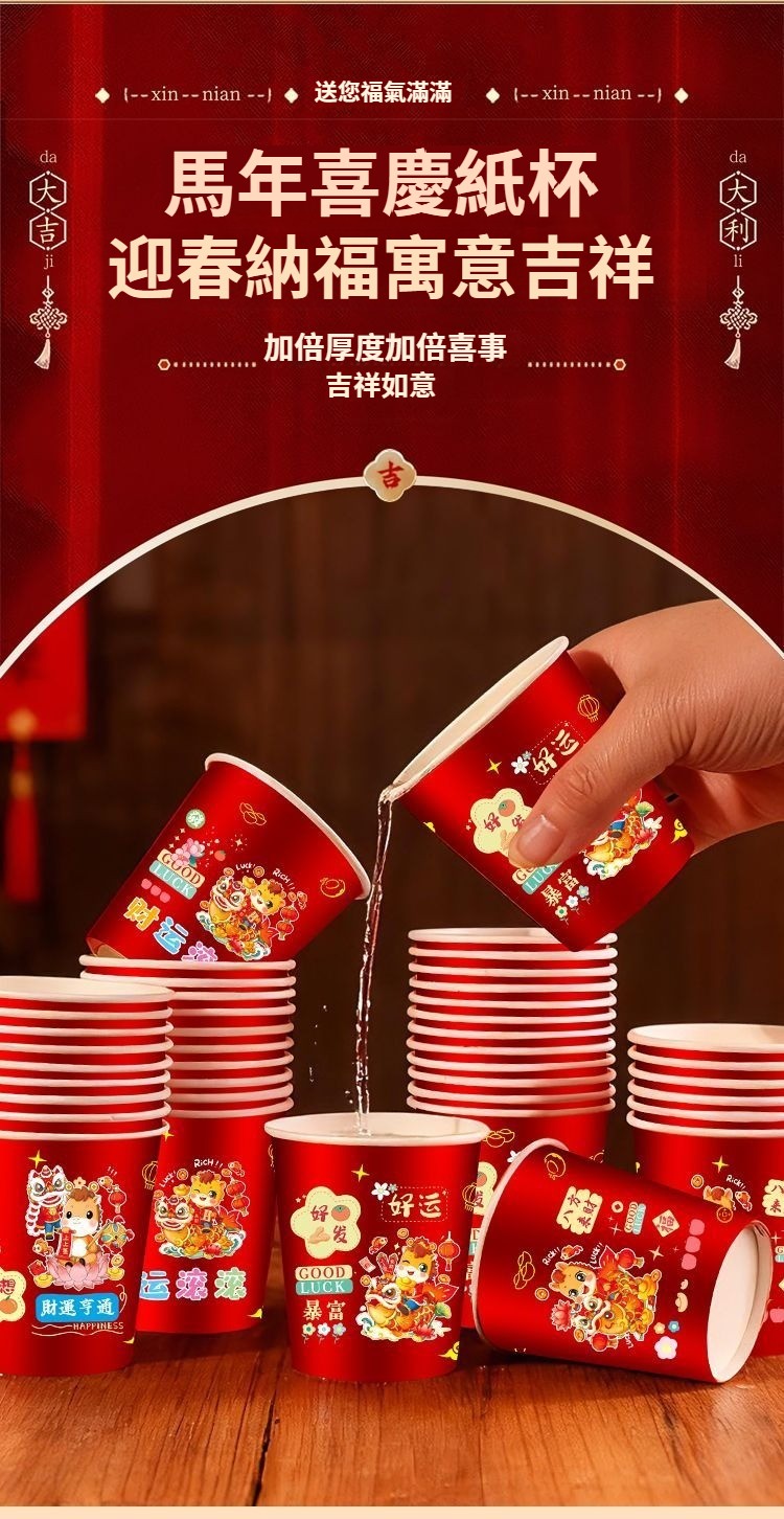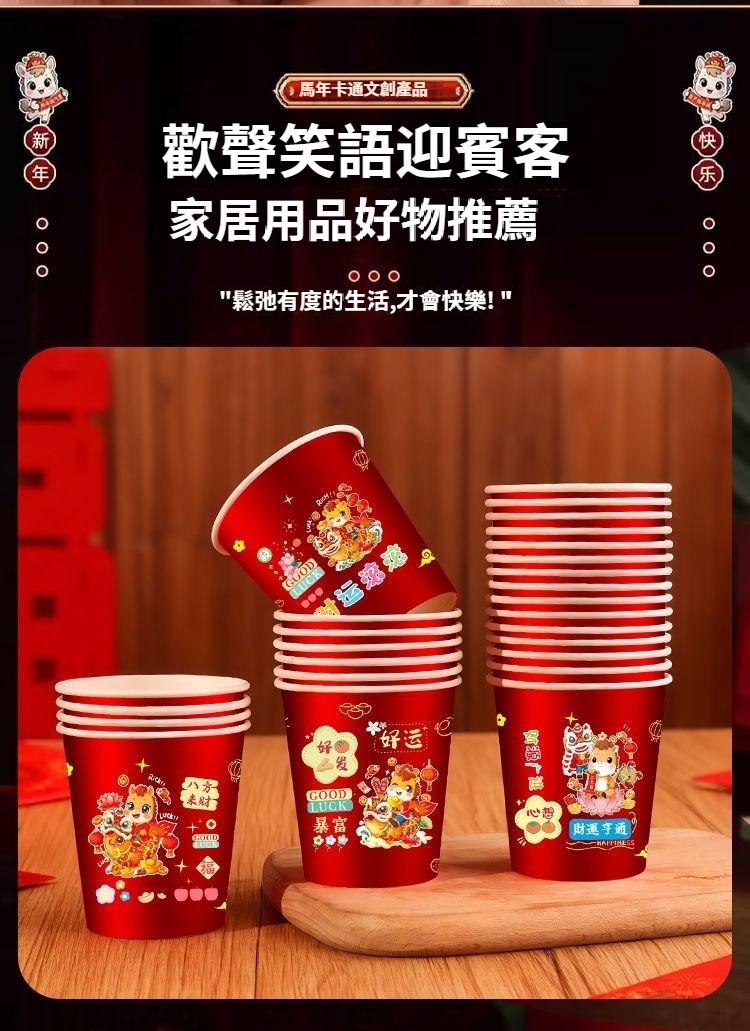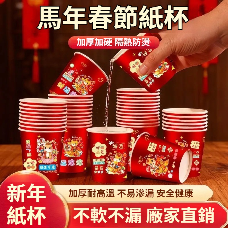 2026新款馬年一次性紙杯紙容器春節喜慶全紅加厚家用耐高溫防燙 NT$ 799