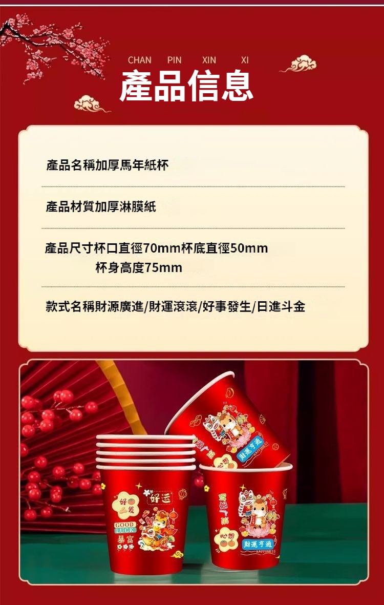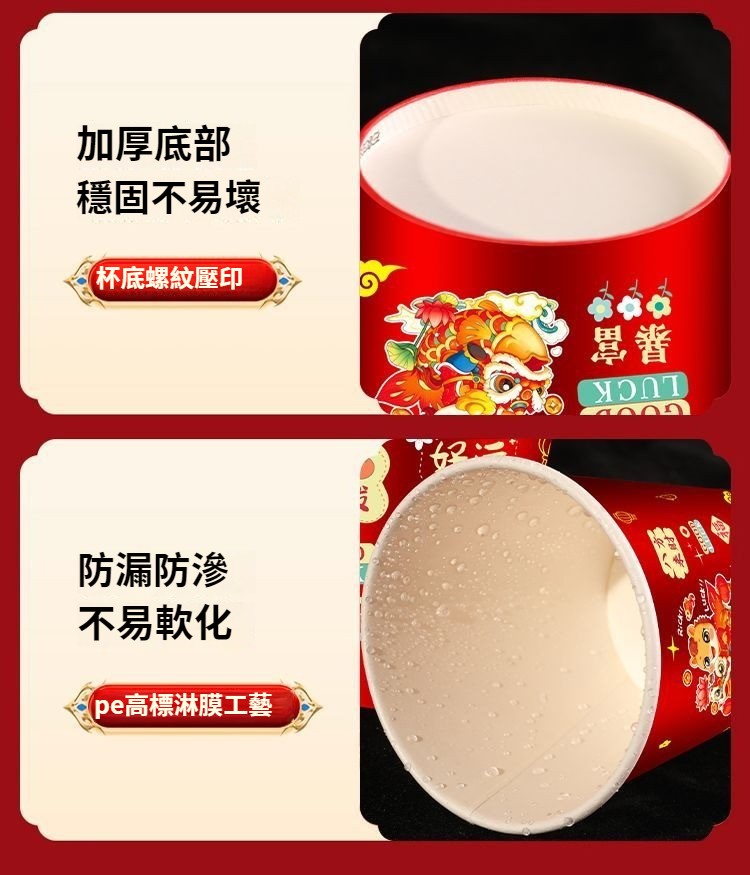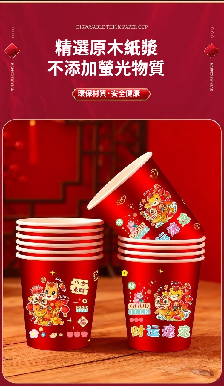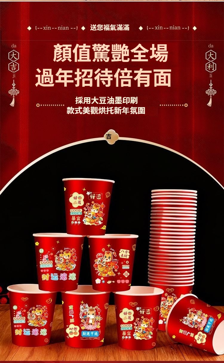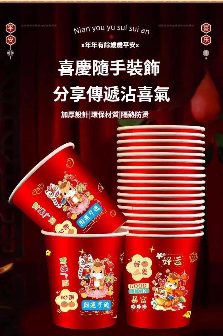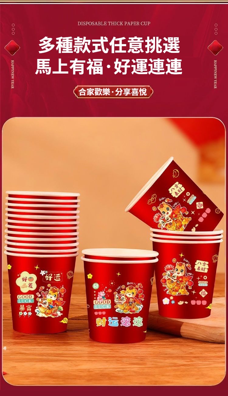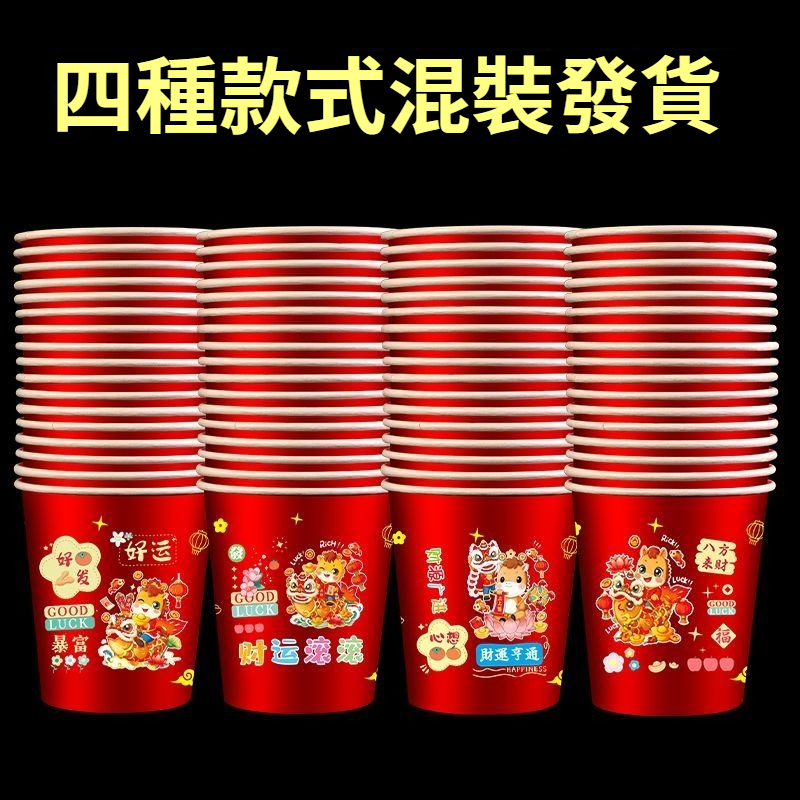 2026新款馬年一次性紙杯紙容器春節喜慶全紅加厚家用耐高溫防燙 NT$ 799