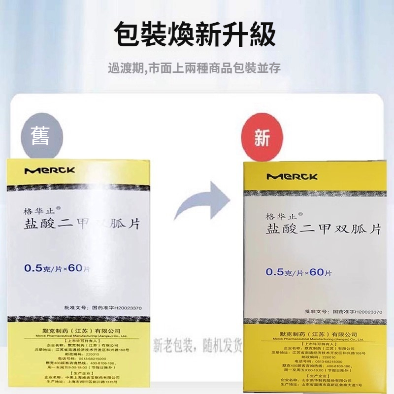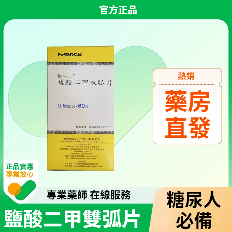 「鹽酸二甲雙胍片0.5g*60片*1瓶/盒、運動控制飲食口渴多飲2型糖尿病高血糖尿糖低血壓格華止進口二甲雙胍片60片 NT$ 1499