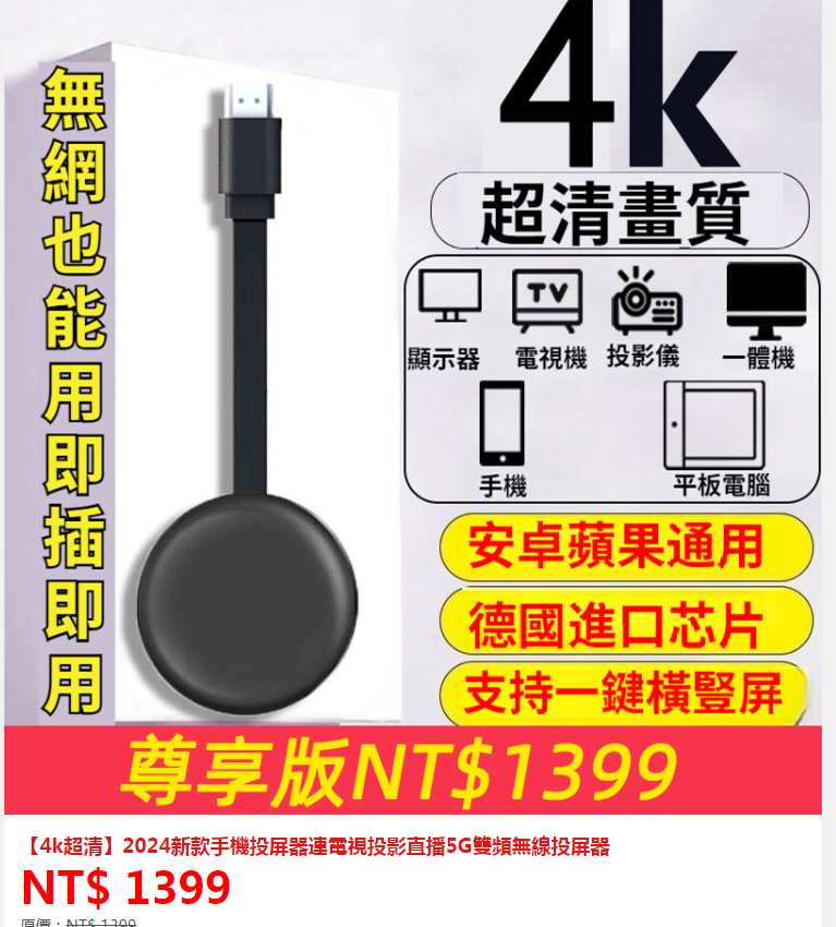 ①手機投屏器4k至尊款【芯片+5G雙頻-不卡頓】+ ②柏葉洗髮皂20塊+③老花鏡兩入組+④贈送花生鹹酥50包