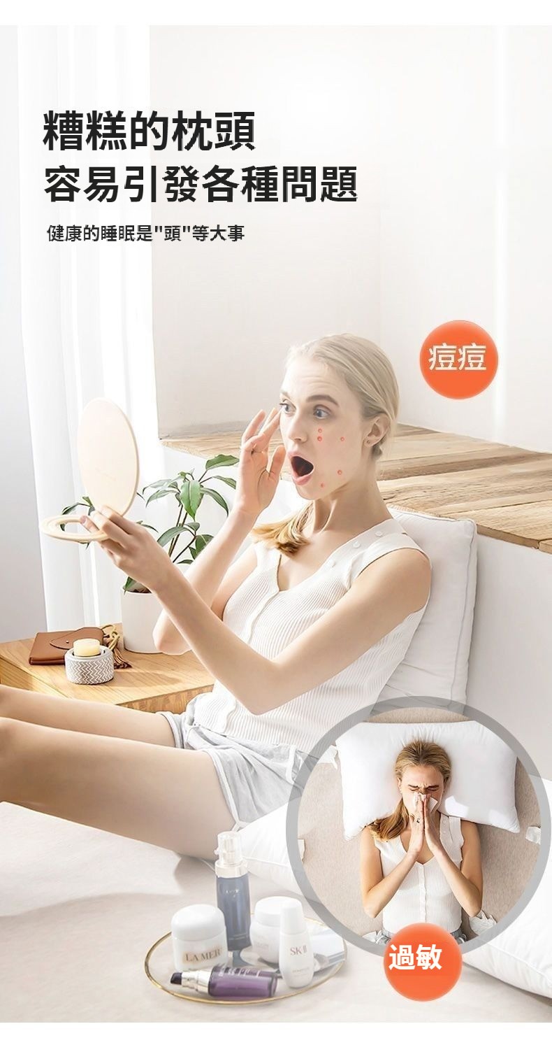 *按摩成人高枕2只裝】高10/12【2枕芯+2抗菌恒溫粉外套】