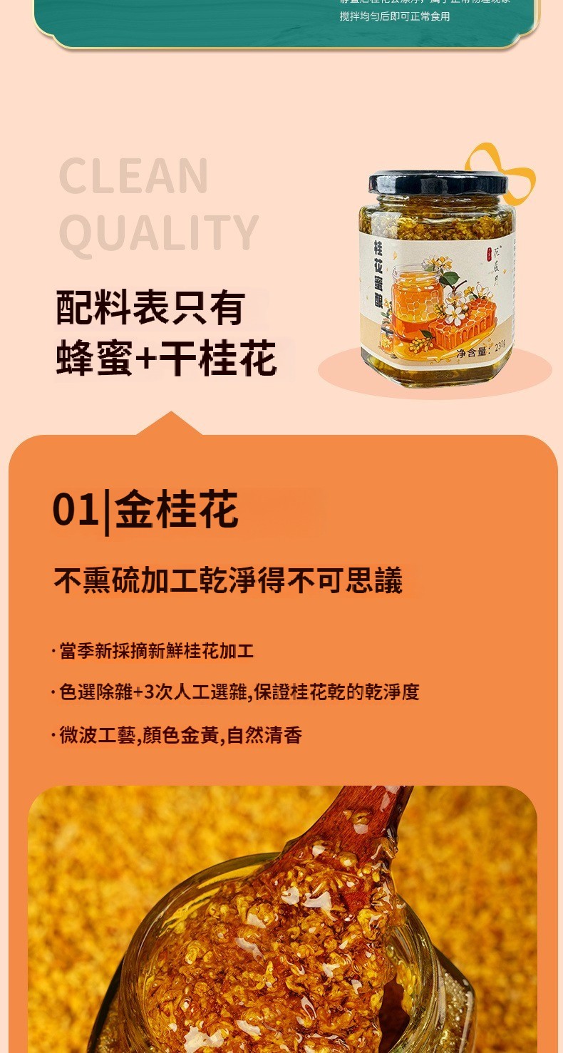 正宗桂花蜜釀配料只有桂花與蜂蜜不添加其他天然家用沖泡飲品蜜醬