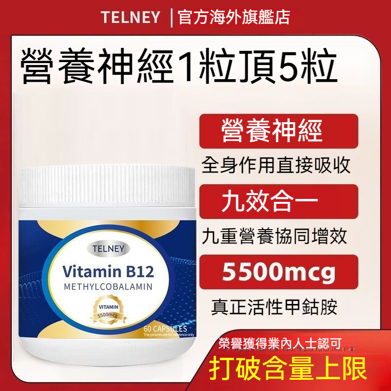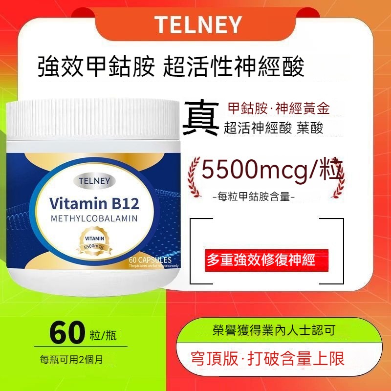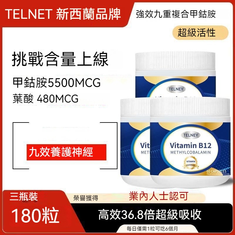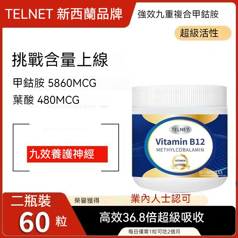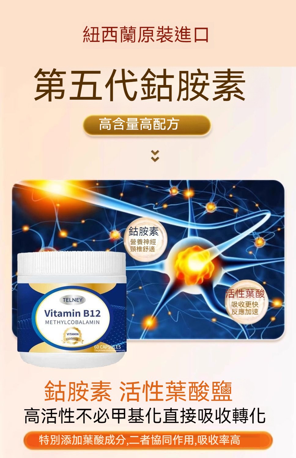 新西蘭甲鈷胺B12神經營養素, 甲鈷胺 5500 MCG, 葉酸 480 MCG, 九效養護神經,神經黃金,多重強效修復神經