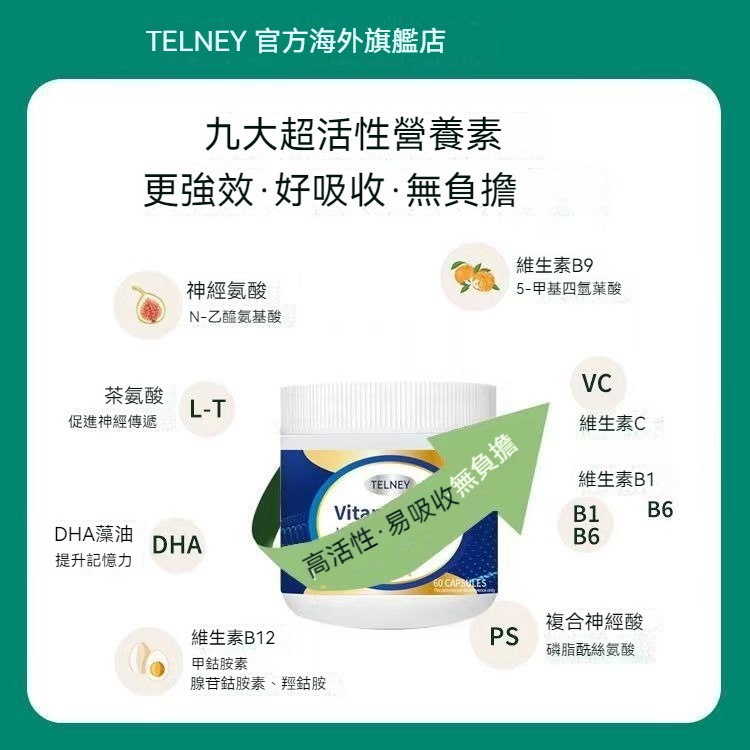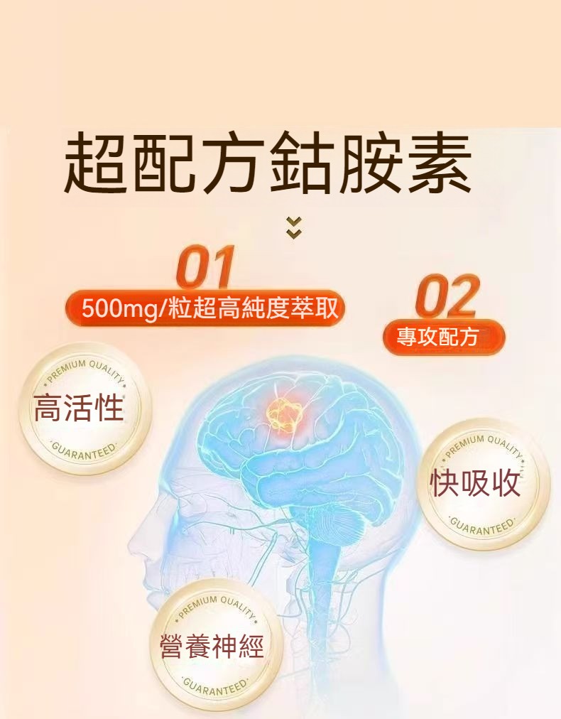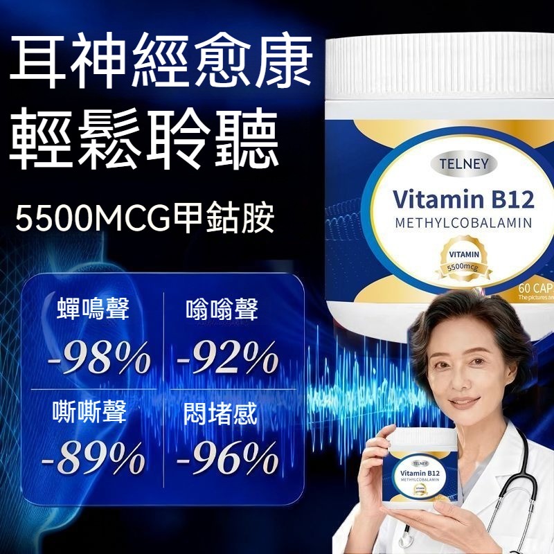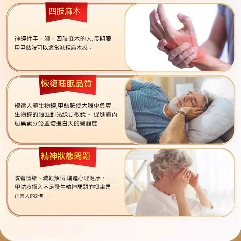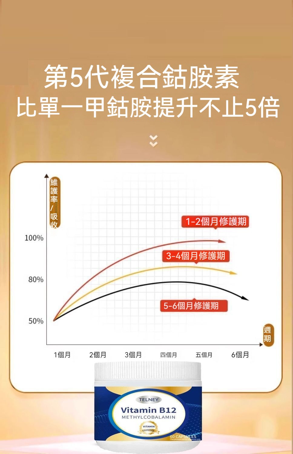 新西蘭甲鈷胺B12神經營養素, 甲鈷胺 5500 MCG, 葉酸 480 MCG, 九效養護神經,神經黃金,多重強效修復神經