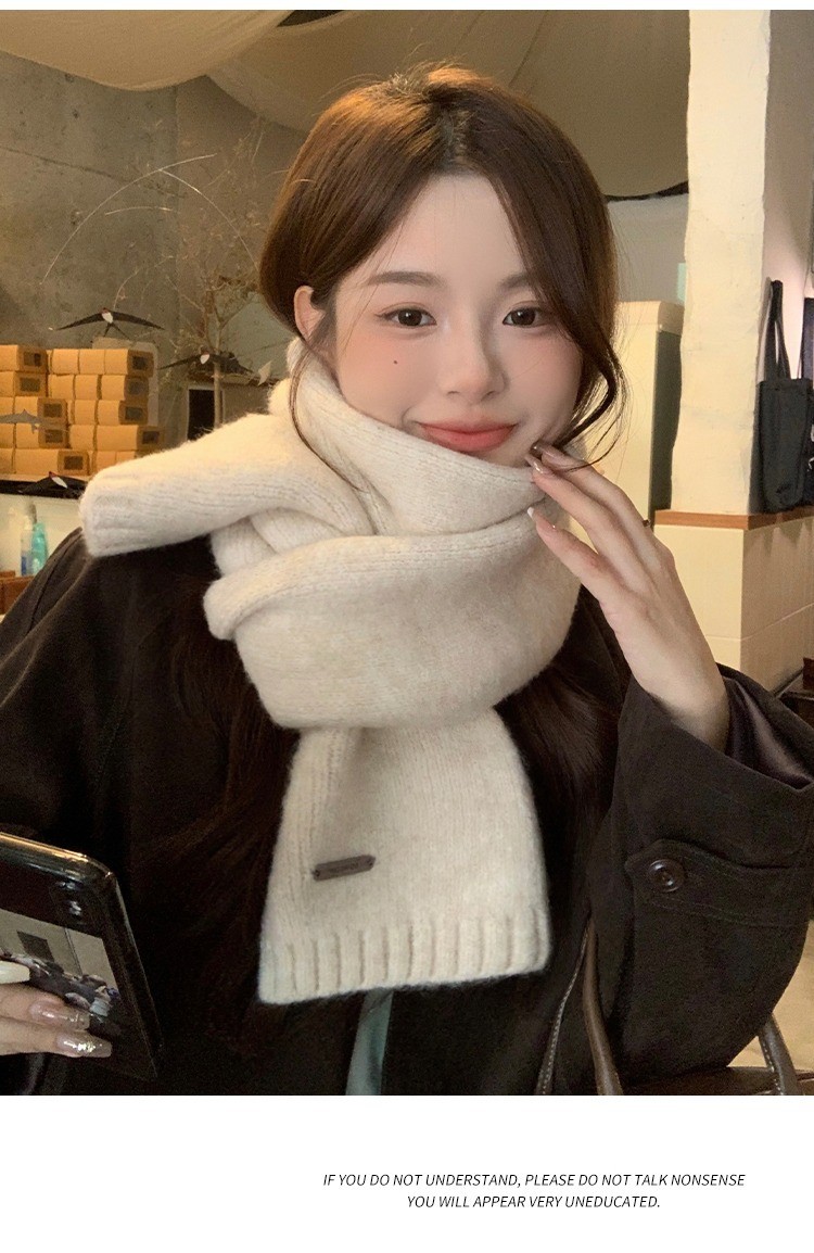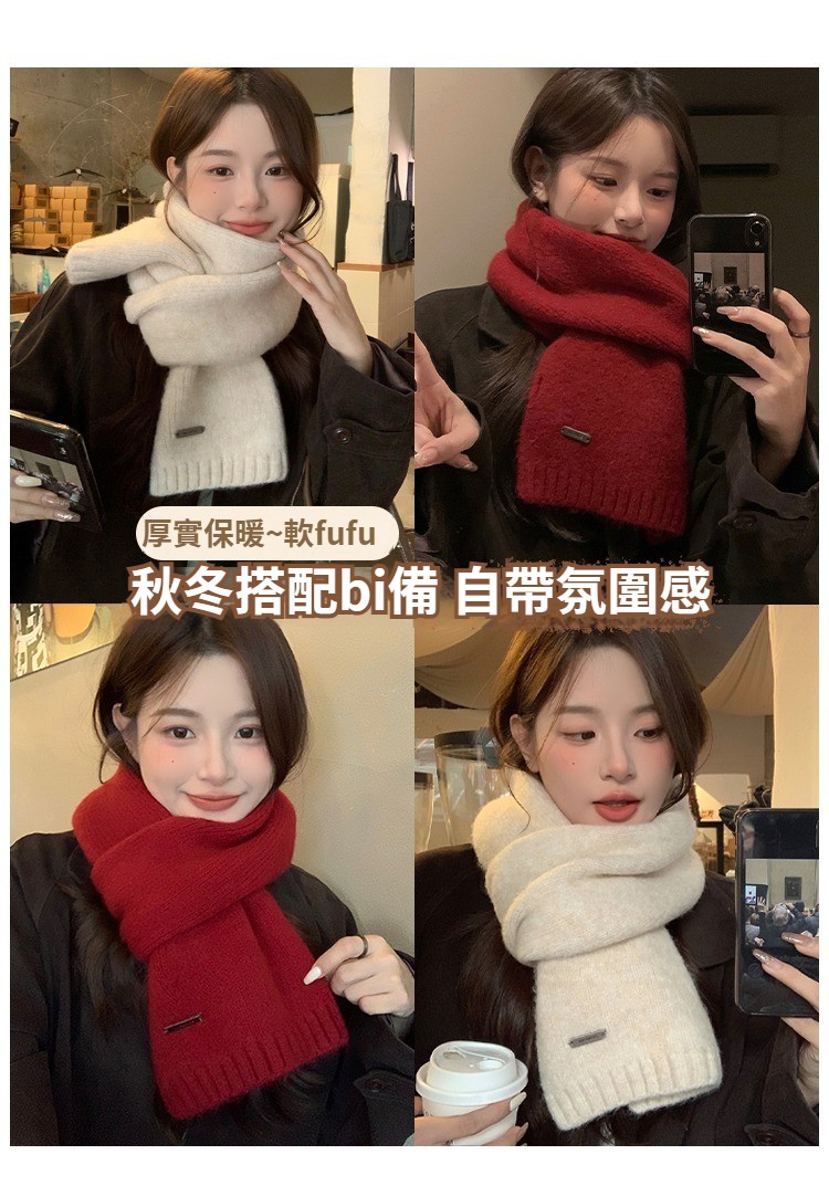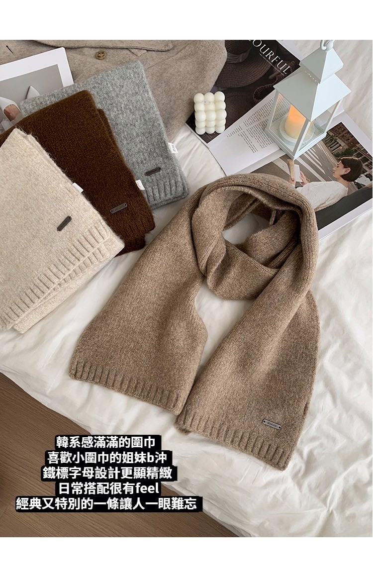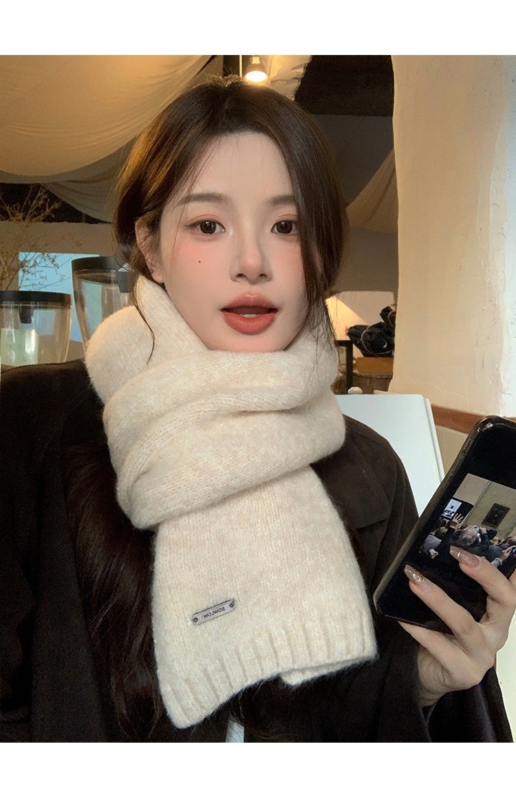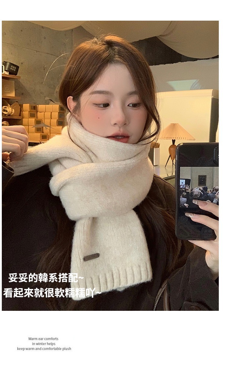 第 2 件 : 韓系羊毛針織毛線純色小圍巾女冬季加厚保暖百搭高級感米色圍脖冬