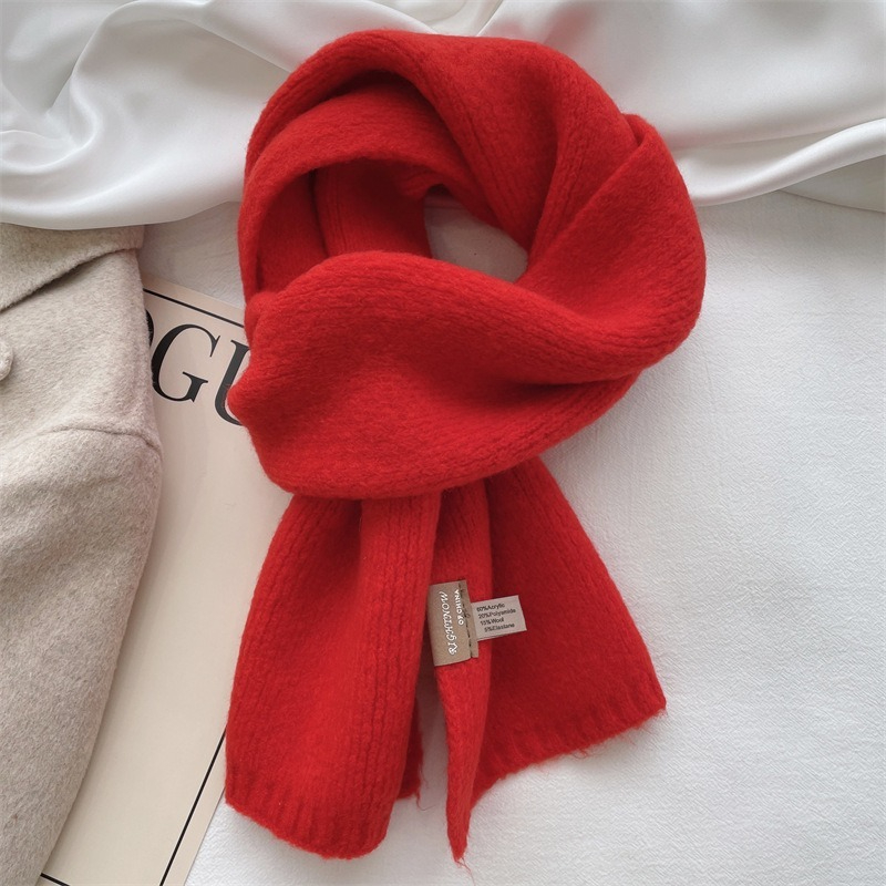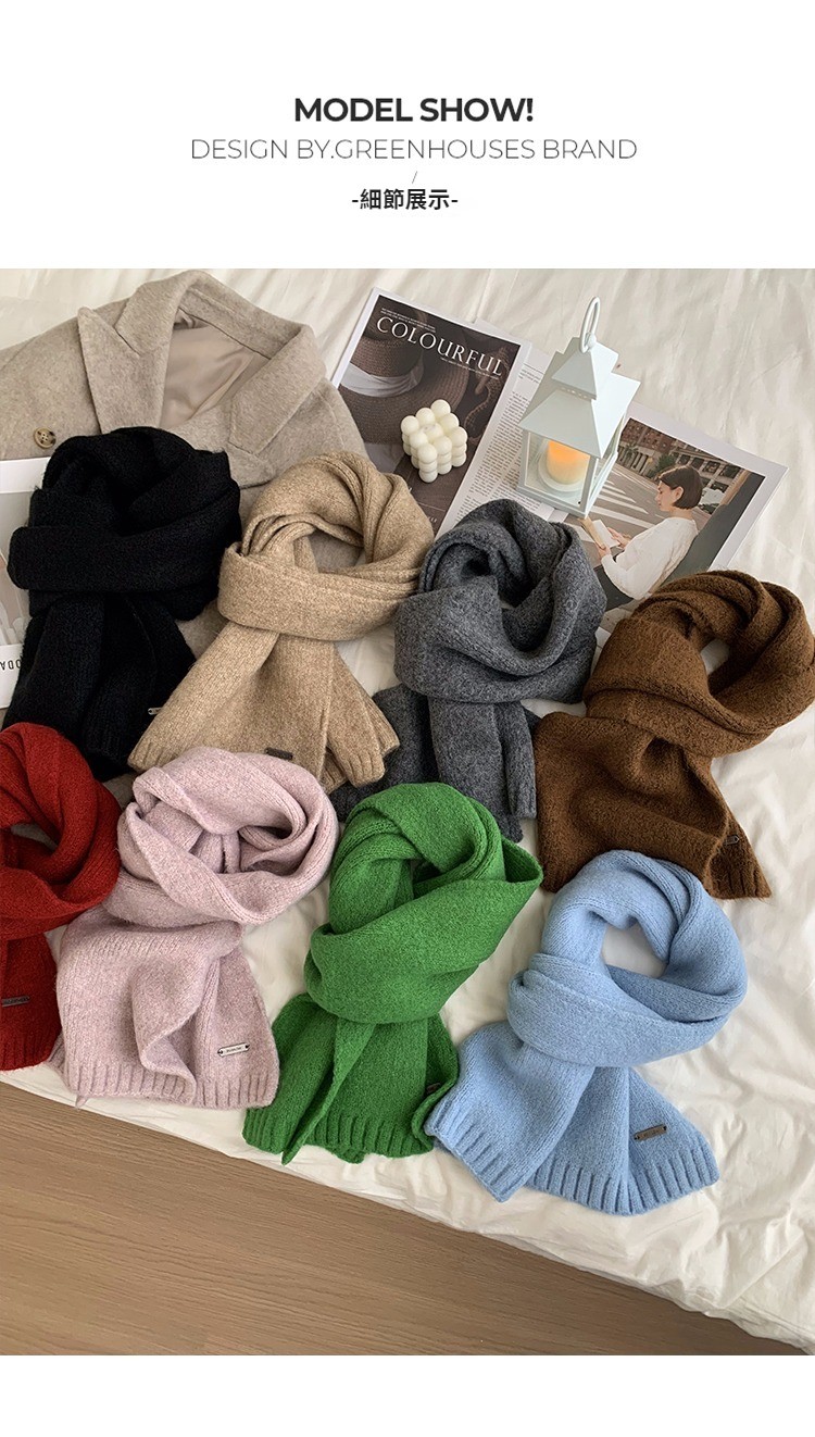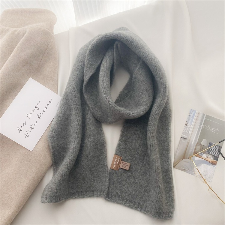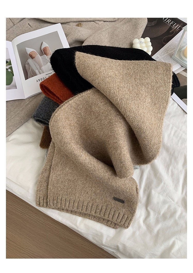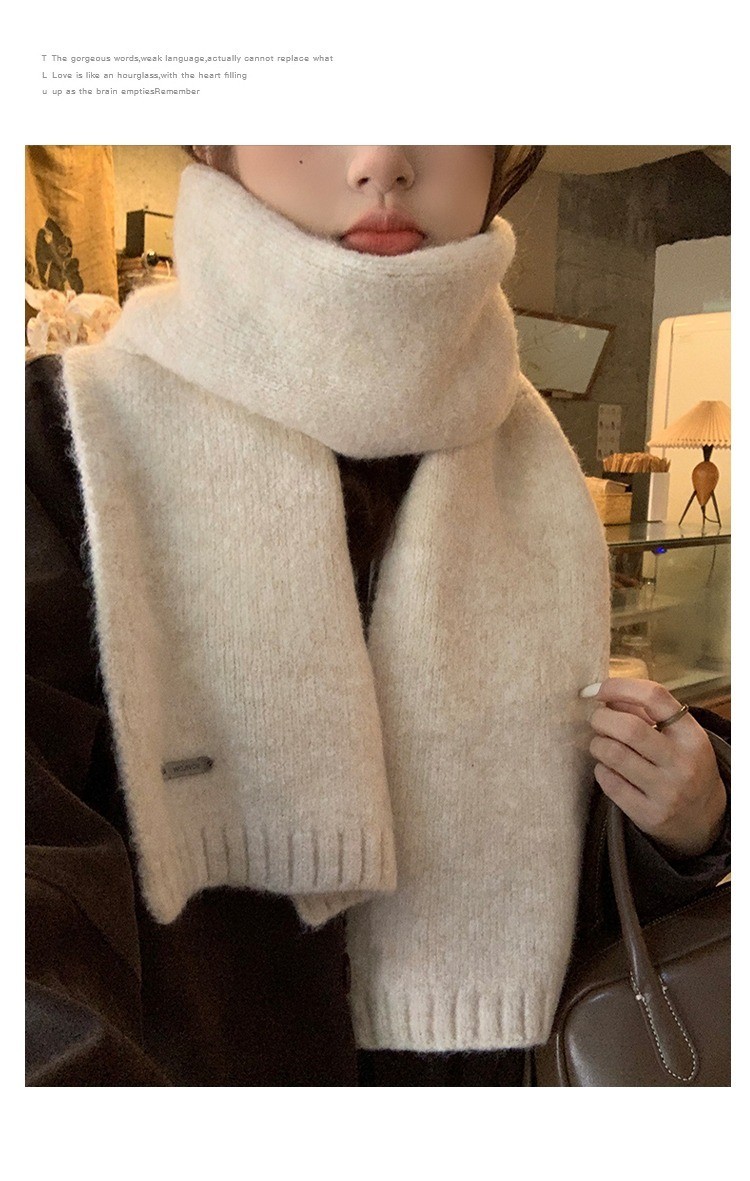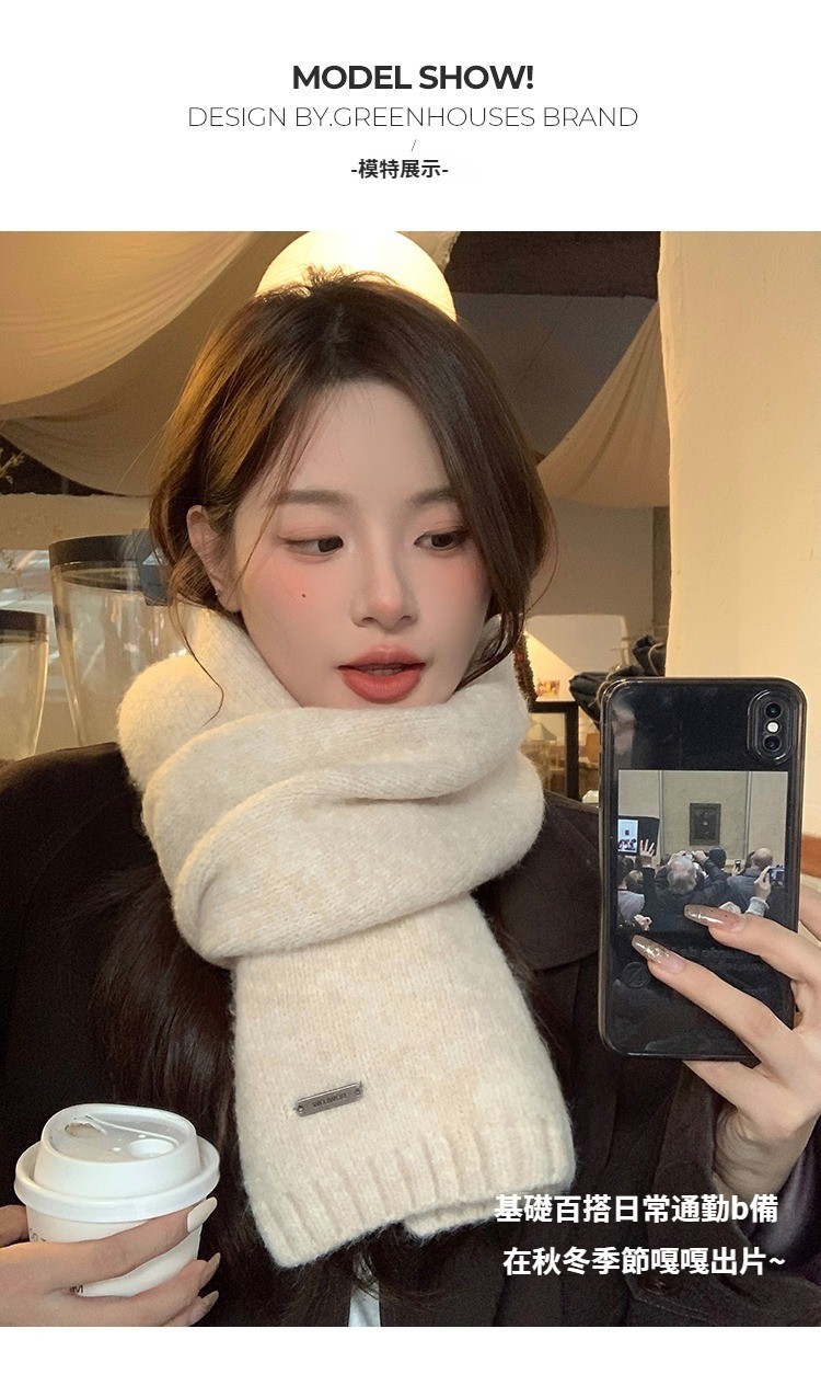 第 2 件 : 韓系羊毛針織毛線純色小圍巾女冬季加厚保暖百搭高級感米色圍脖冬