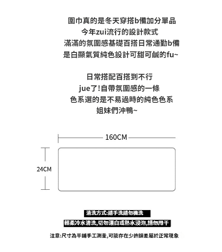 第 1 件 : 韓系羊毛針織毛線純色小圍巾女冬季加厚保暖百搭高級感米色圍脖冬
