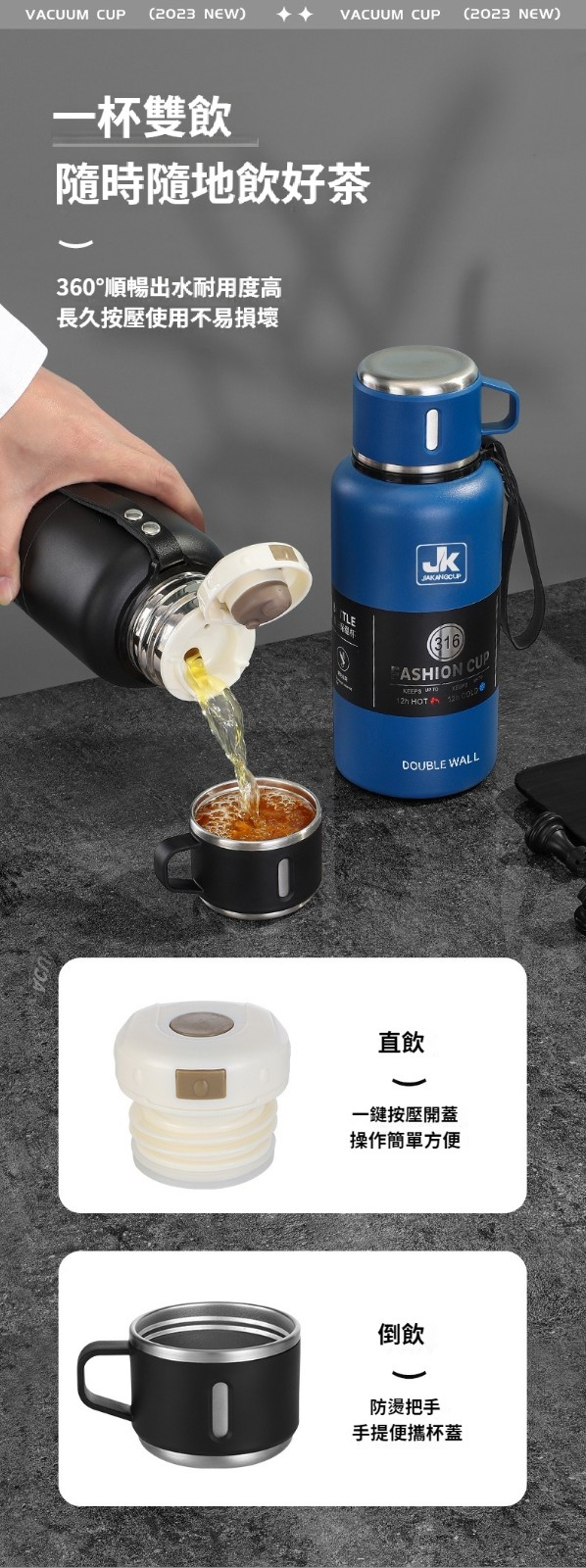 第 1 件 : 保溫杯316不鏽鋼戶外釣魚車載旅行壺便攜運動戶外茶水分離杯
