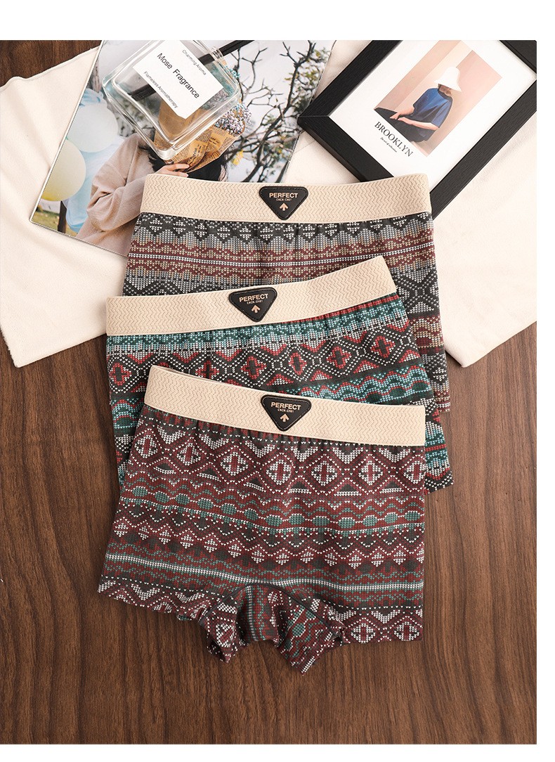 第 3 件 : 國潮復古內褲女士棉質新款抗菌襠女生平角褲民族風透氣中腰短褲