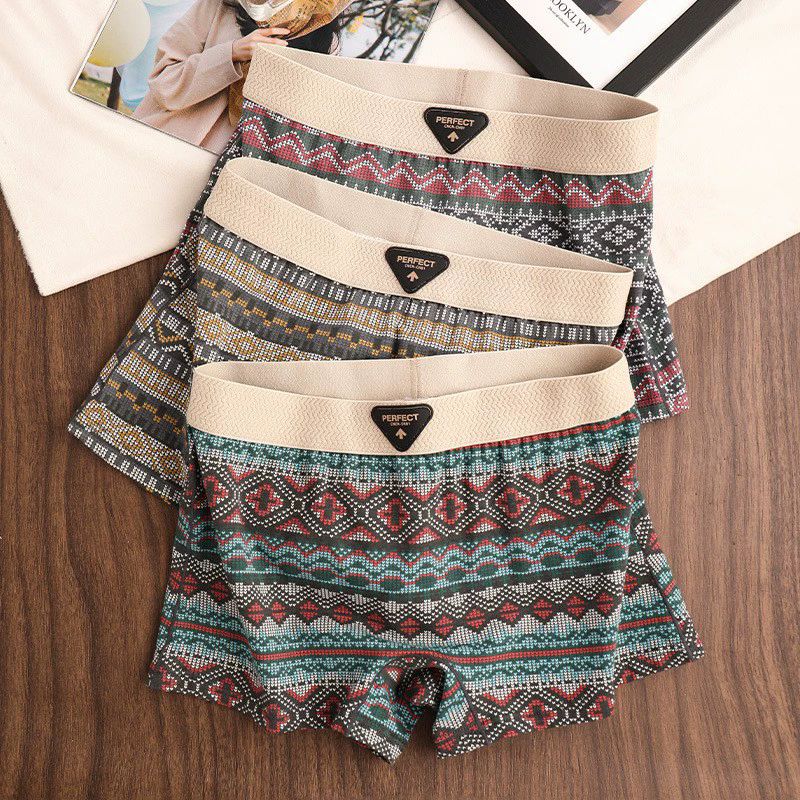 第 1 件 : 國潮復古內褲女士棉質新款抗菌襠女生平角褲民族風透氣中腰短褲