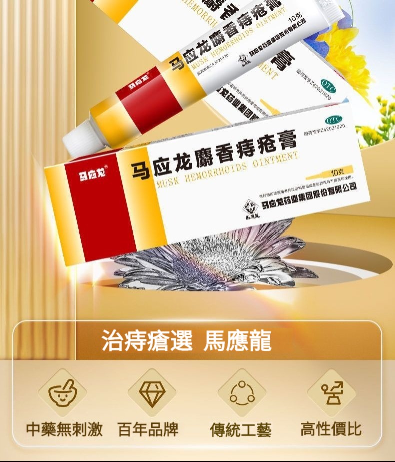【1抹消痔!草本植萃,鎮痛消腫,安全無刺激,預防便血】馬應龍馬應龍麝香痔瘡膏,10g,改善濕熱瘀阻所致的痔瘡