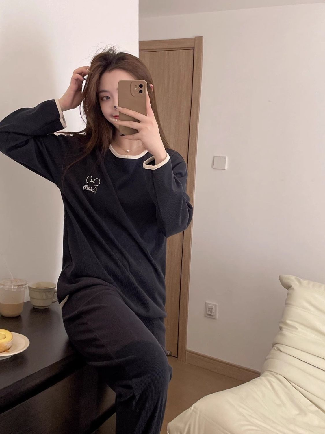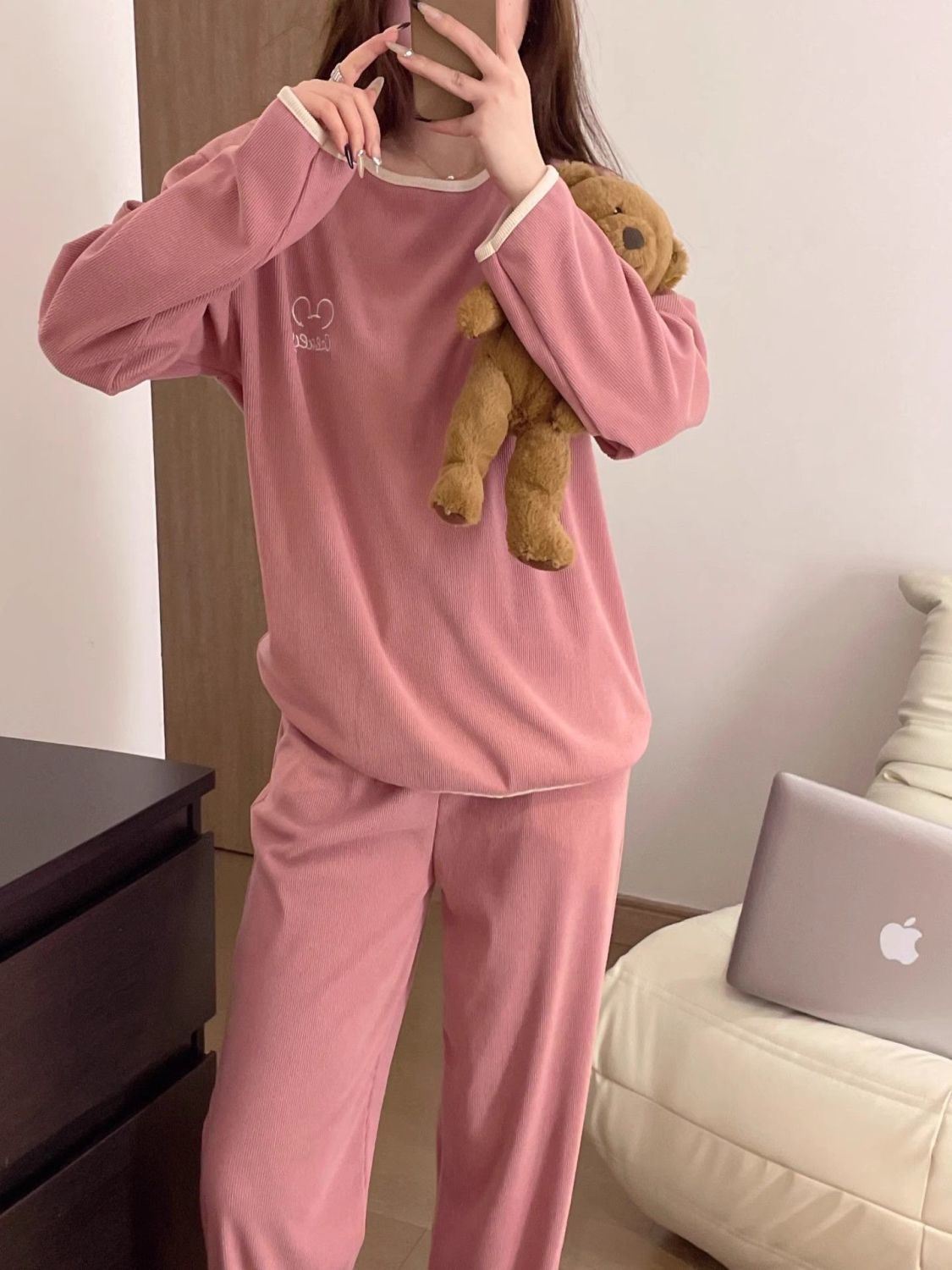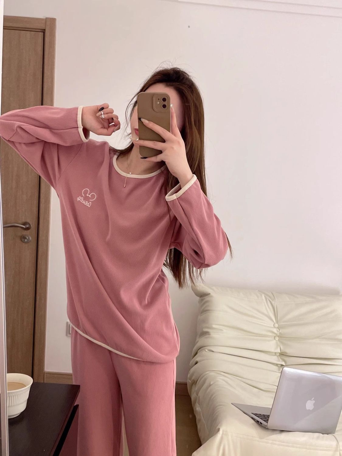 第 2 件 : 2026年新款睡衣女大尺碼長袖長褲可愛胖MM可外穿套裝女士家居服甜美
