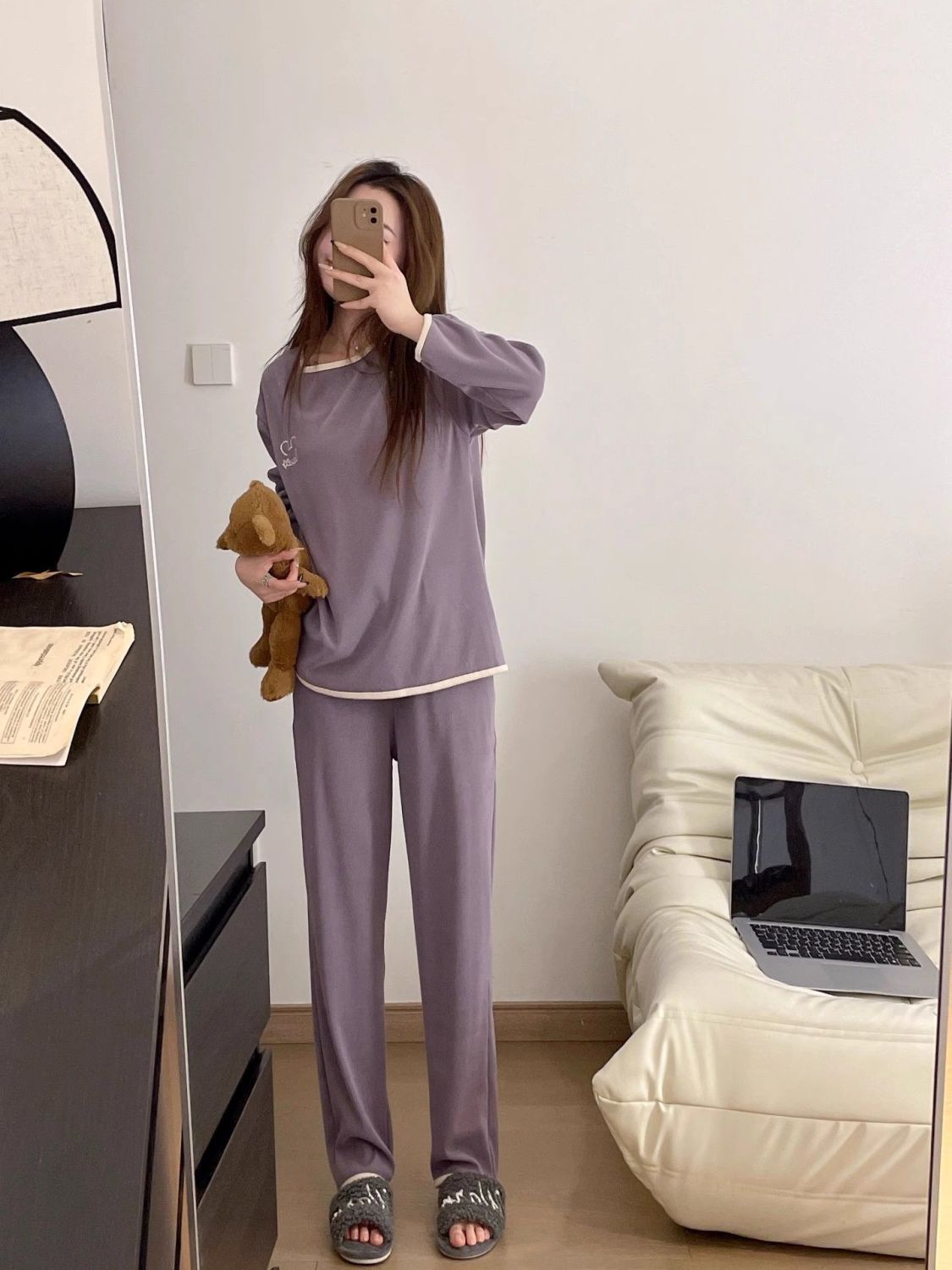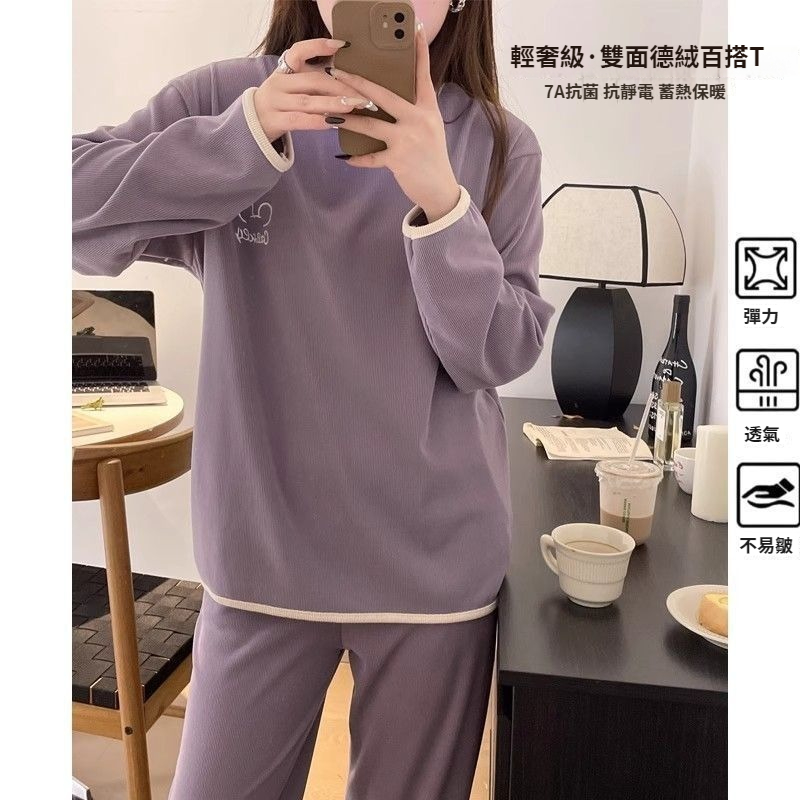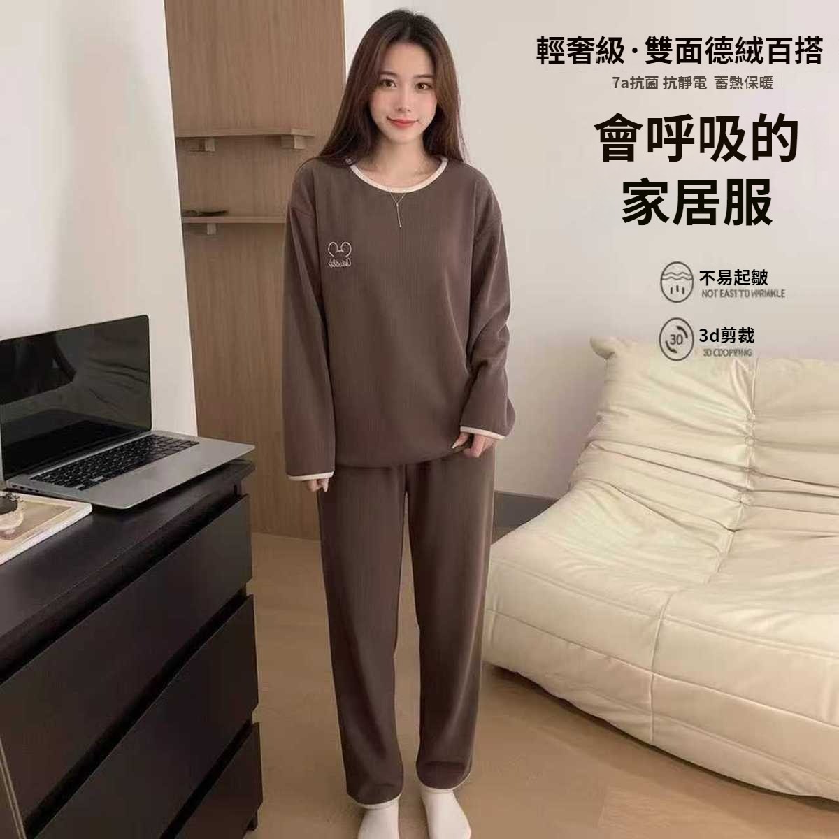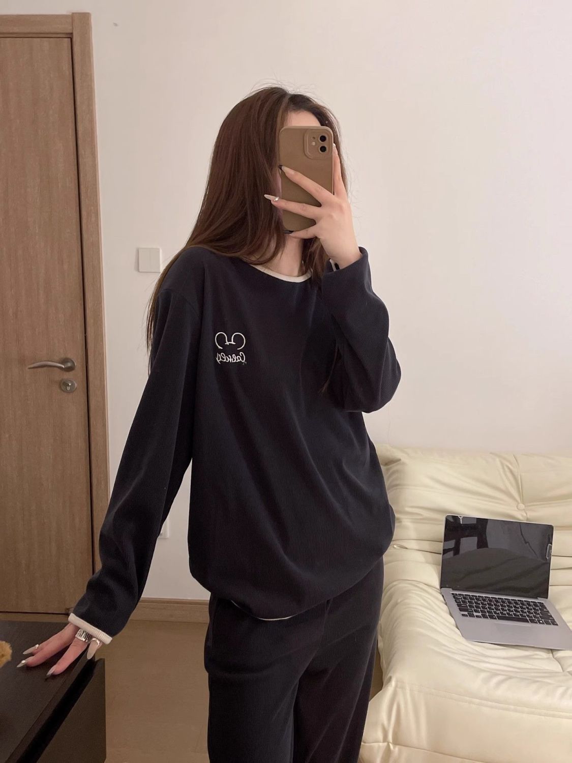 第 2 件 : 2026年新款睡衣女大尺碼長袖長褲可愛胖MM可外穿套裝女士家居服甜美