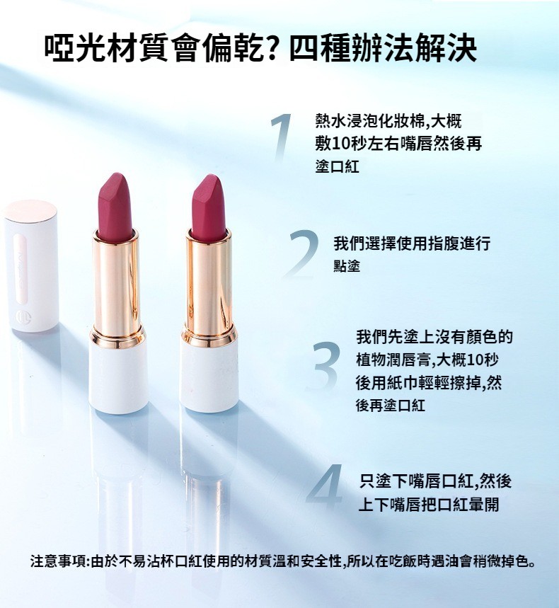 第 2 件 : 熱門正品MYG不沾杯不掉色口紅唇膏霧面防水防汗顯氣色小白管口紅