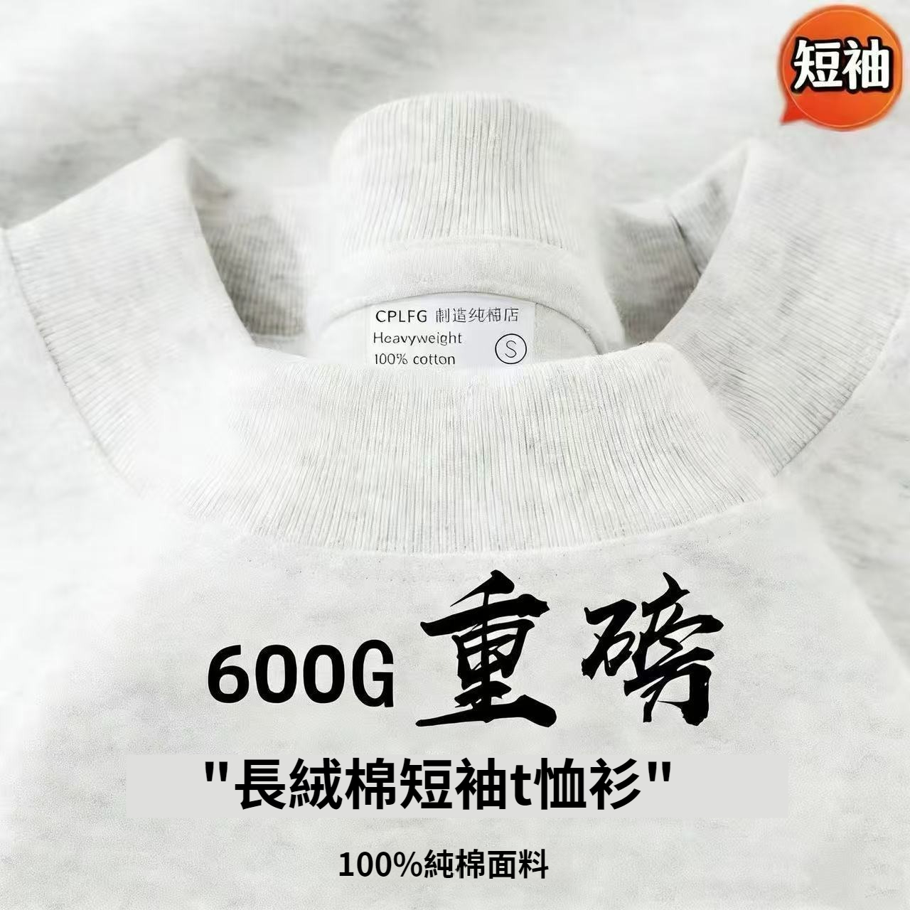第 1 件 : 兩件裝 600g重磅短袖竹節T恤男女長絨純棉加厚日系短袖高克重