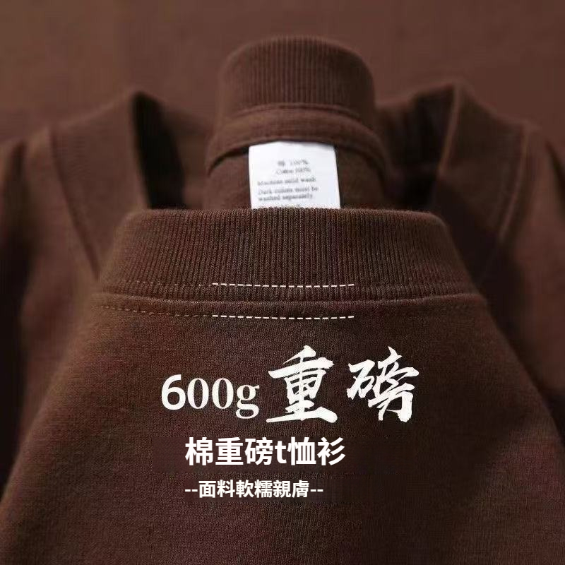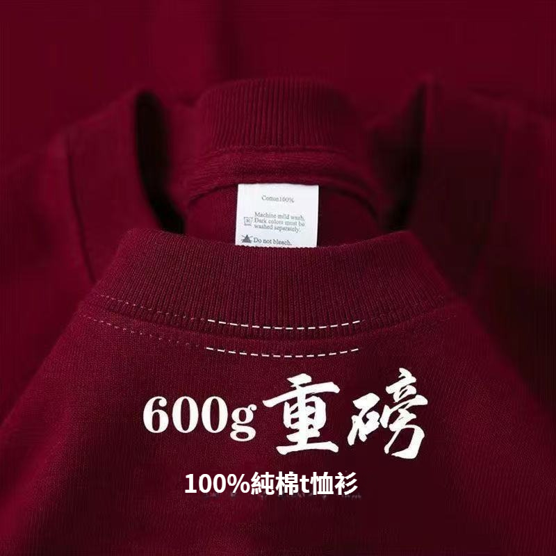 兩件裝 600g重磅短袖竹節T恤男女長絨純棉加厚日系短袖高克重