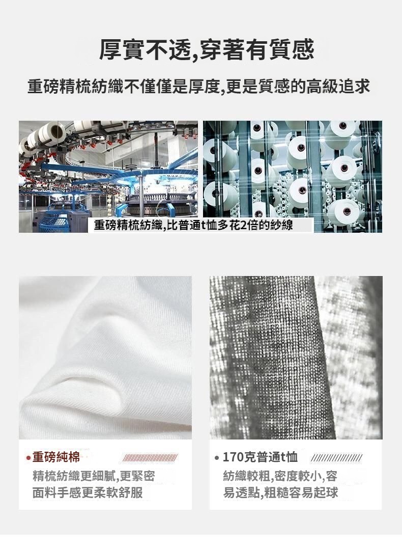 第 2 件 : 兩件裝 600g重磅短袖竹節T恤男女長絨純棉加厚日系短袖高克重