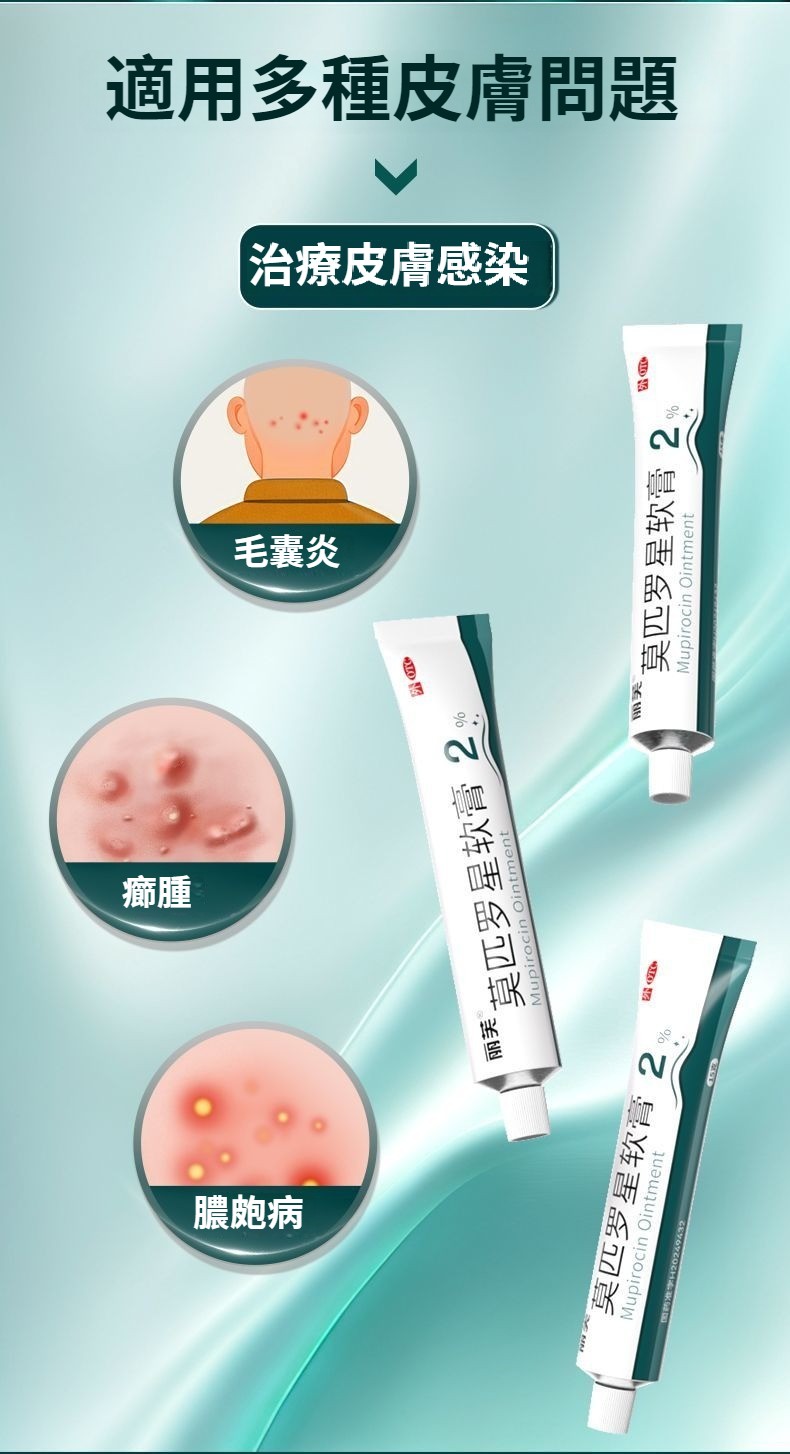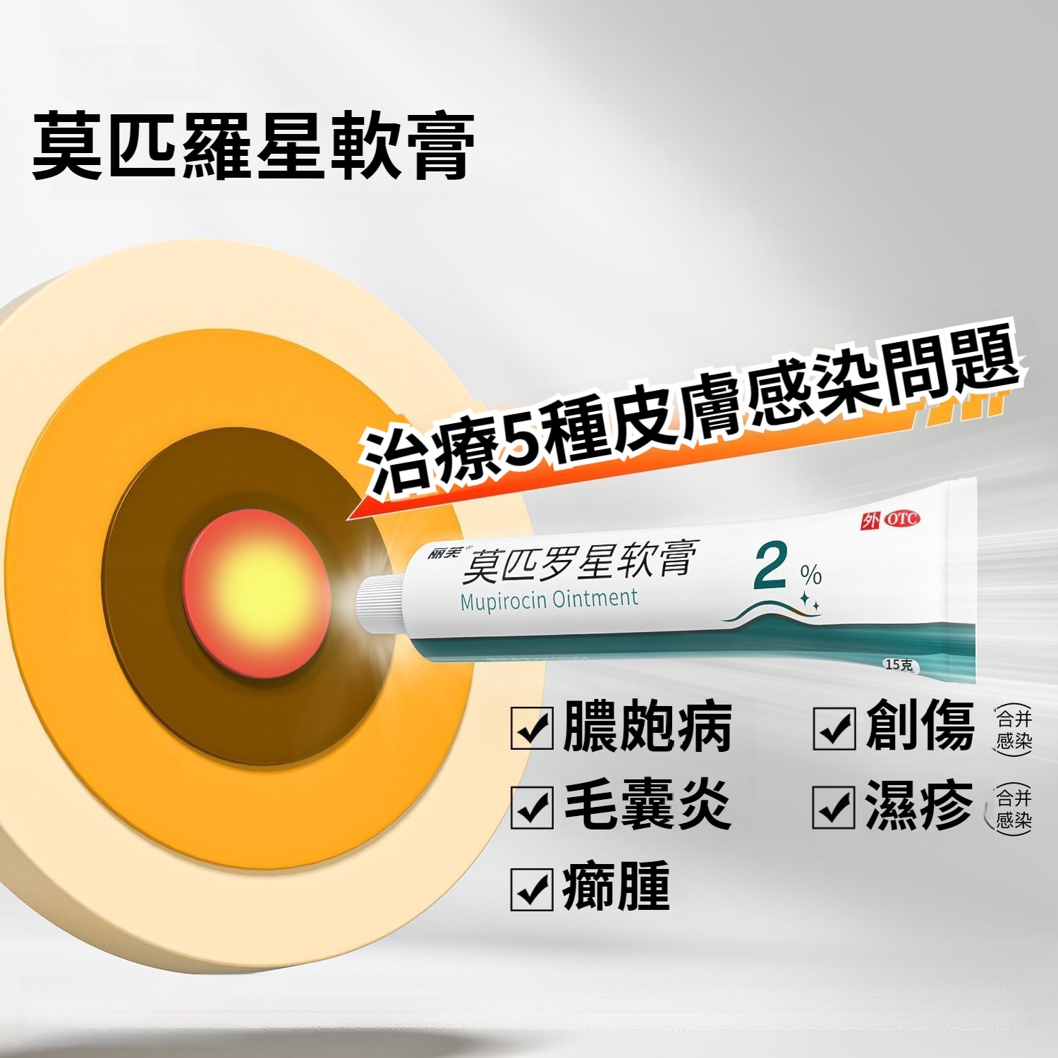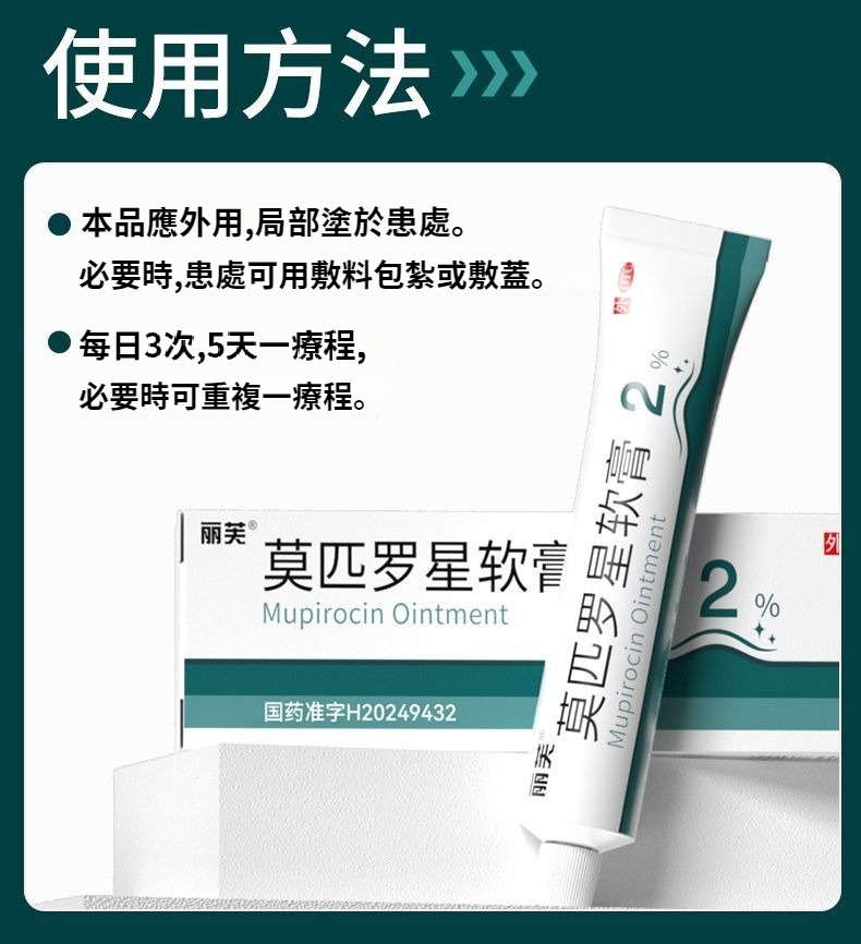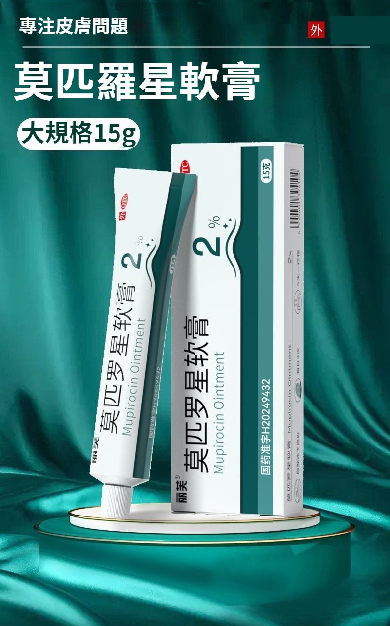 治療各類皮膚疾病:毛囊炎、火癤子、膿皰、濕疹、表淺創傷等等,告別紅腫搔癢細菌感染以及皮膚表淺創傷。 【麗芙 莫匹羅星軟膏 】15g1支/盒 麗芙莫匹羅星軟膏。 清潔患處:使用前先用清水或生理食鹽水清洗並擦乾。 - 塗抹藥物:取適量軟膏薄塗於感染部位,每日2~3次。 - 療程:一般5~10天,即使症狀緩解也需完成療程。 NT$ 880
