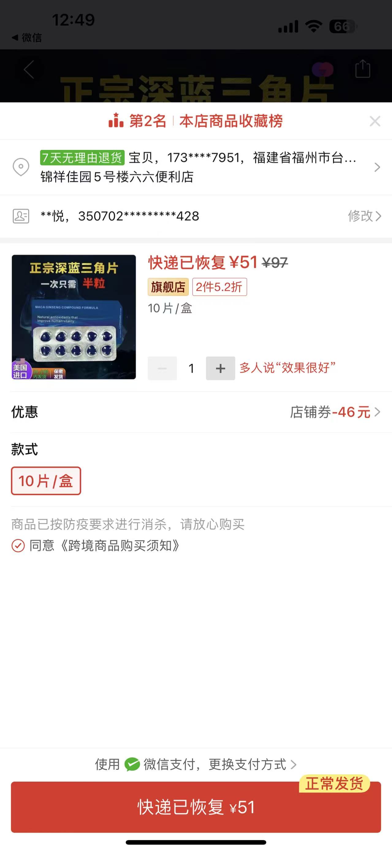 ①進口深藍三角片1盒10粒+②每粒堅1粒