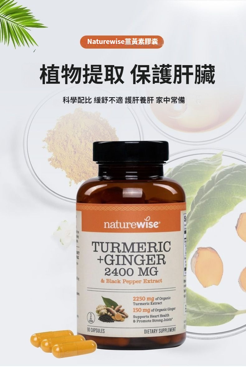 美國直郵 Naturewise 高濃度薑黃素護關節熬夜加班解酒護肝養肝