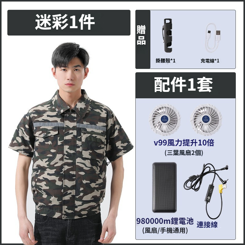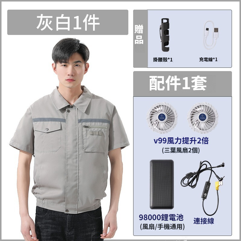 第 1 件 : 夏季短袖空調服男防暑降溫冷帶風扇的衣服戶外建築勞保工作服