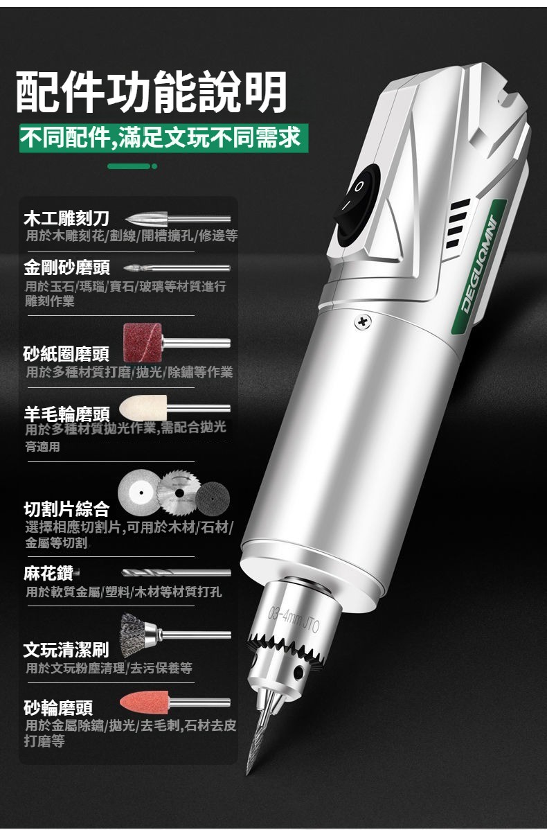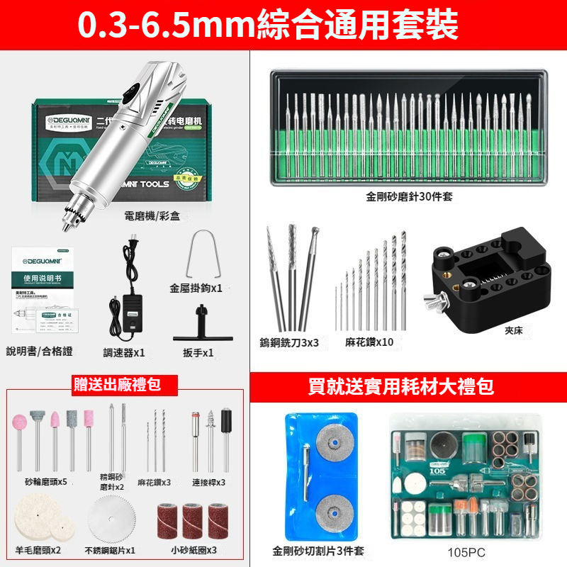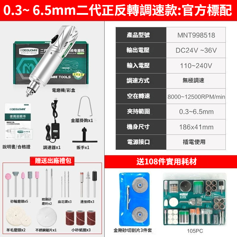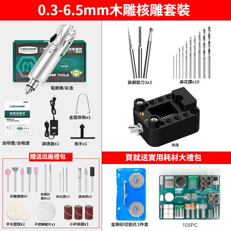 正反轉調速電磨:綜合套裝【木玉通用】(標準配備+送108件配備禮包):2180
