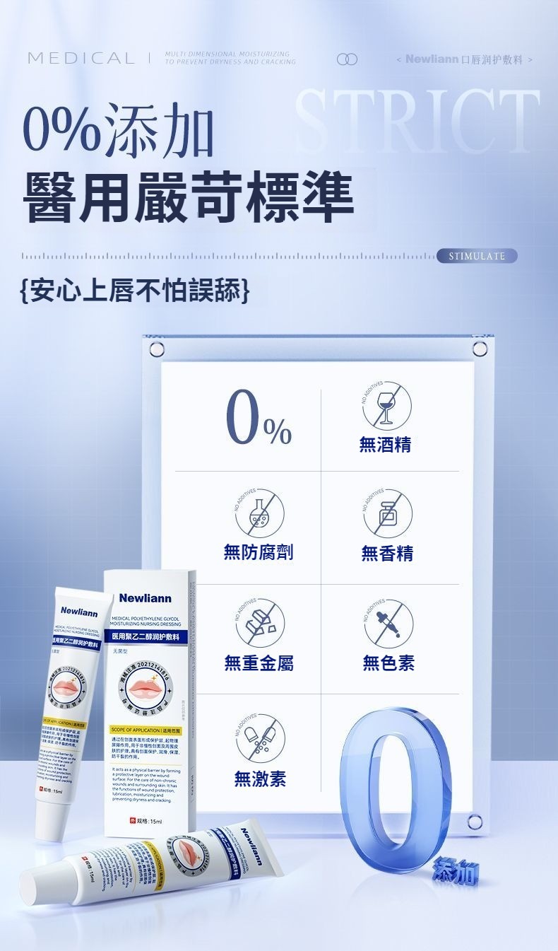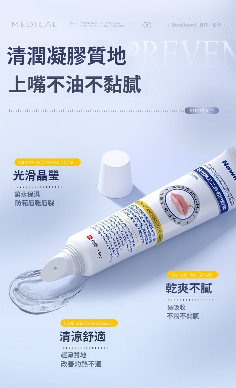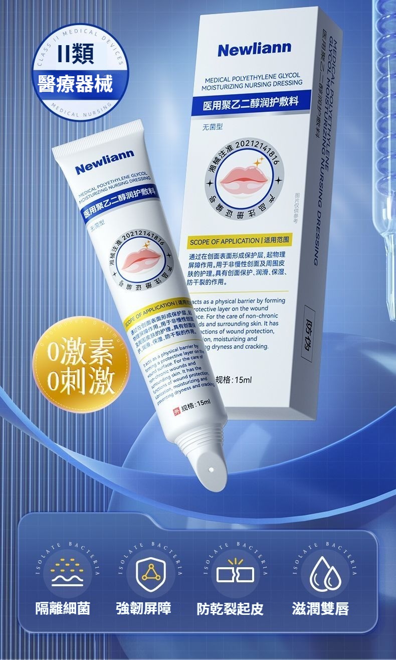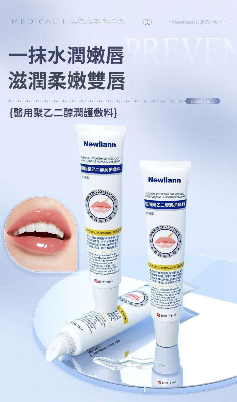 紐利安聚乙二醇潤護敷料15ml醫用級嘴唇乾裂脫皮唇炎補水保滋潤