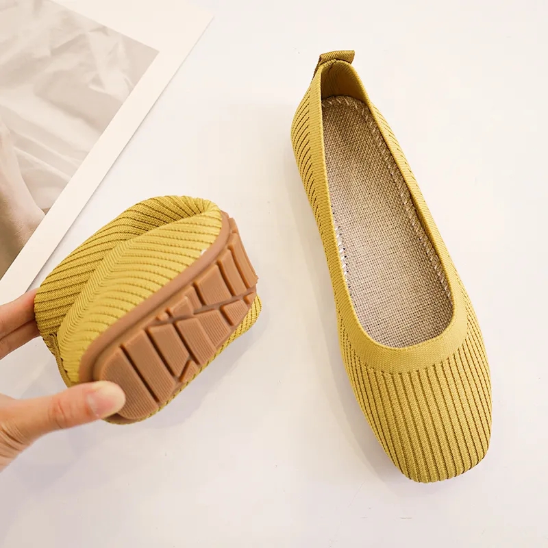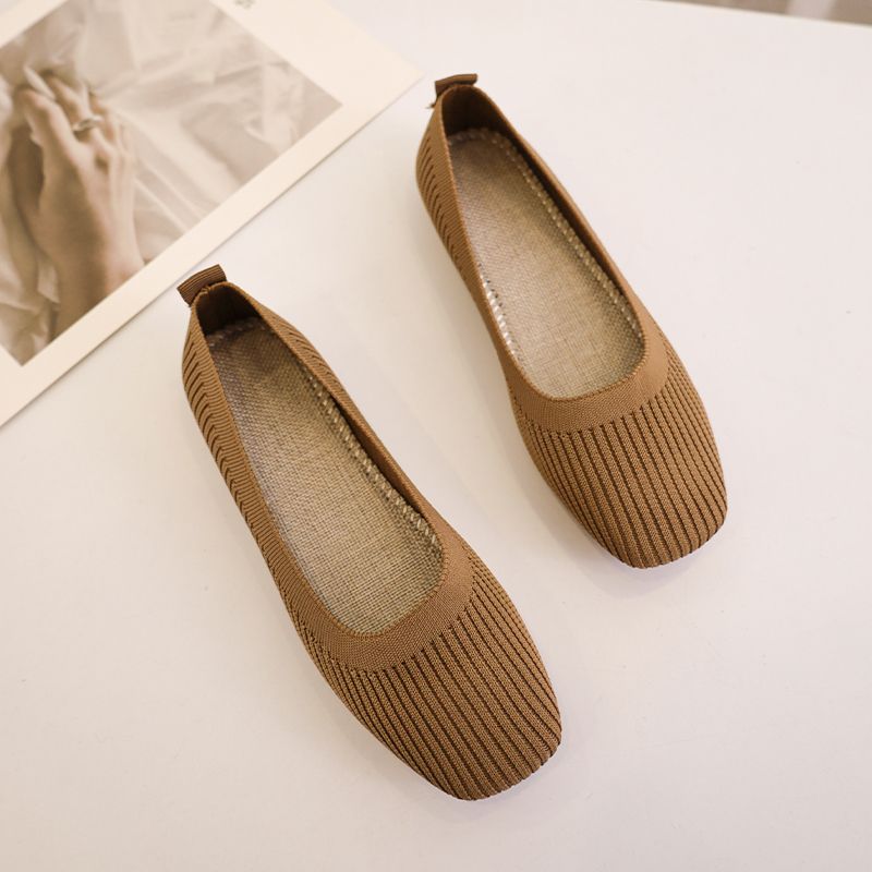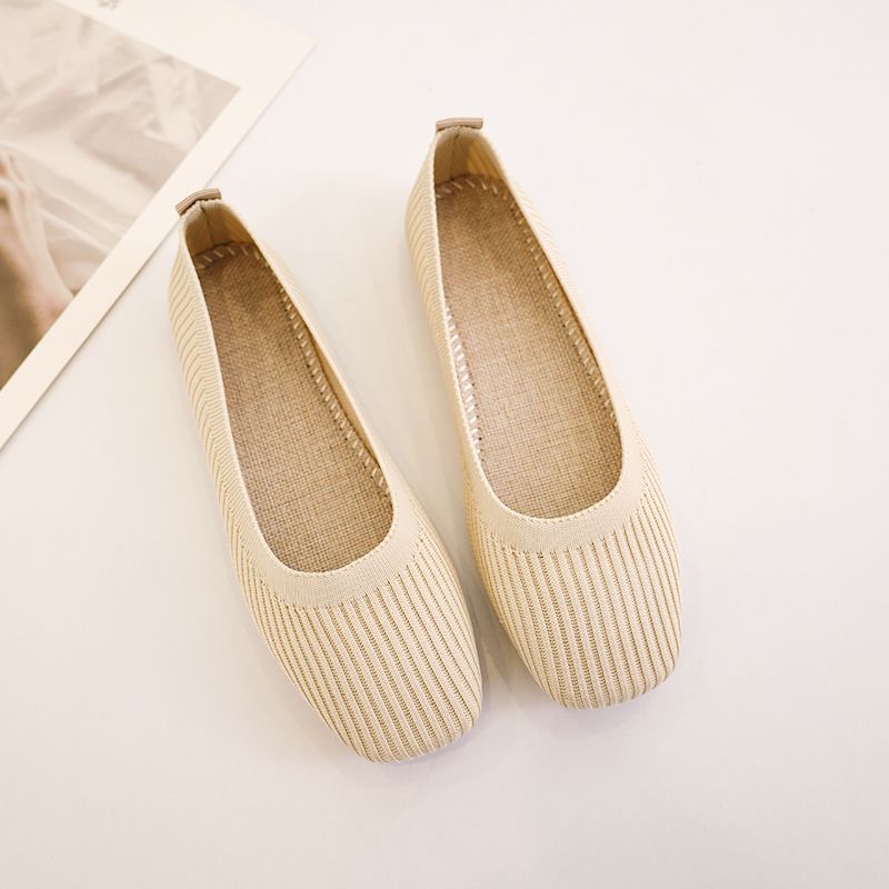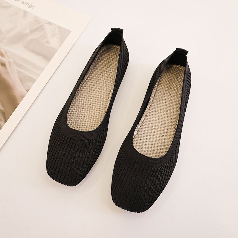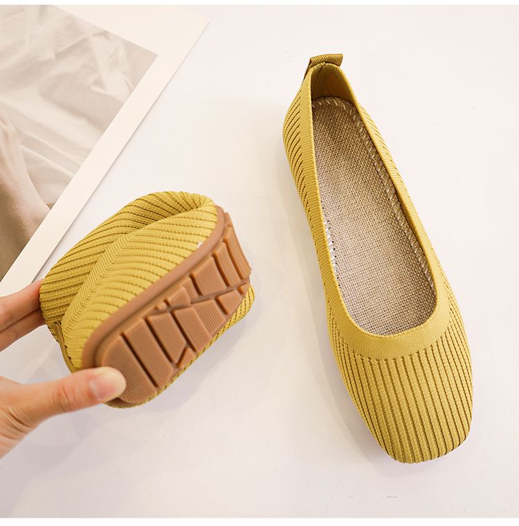 針織單鞋女春夏2026新款一腳蹬豆豆方頭淺口飛織平底透氣軟底單鞋