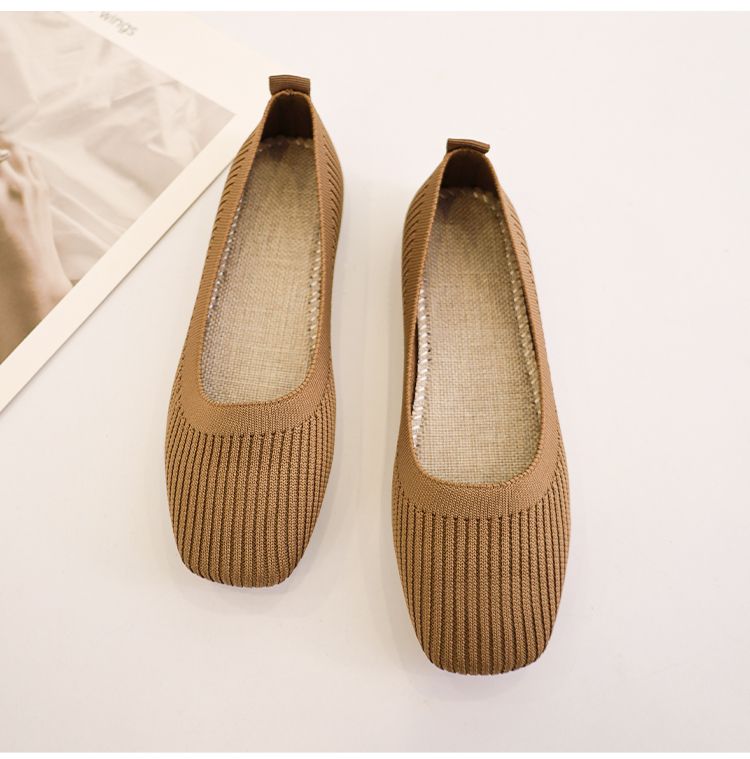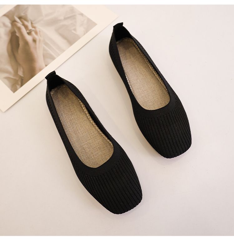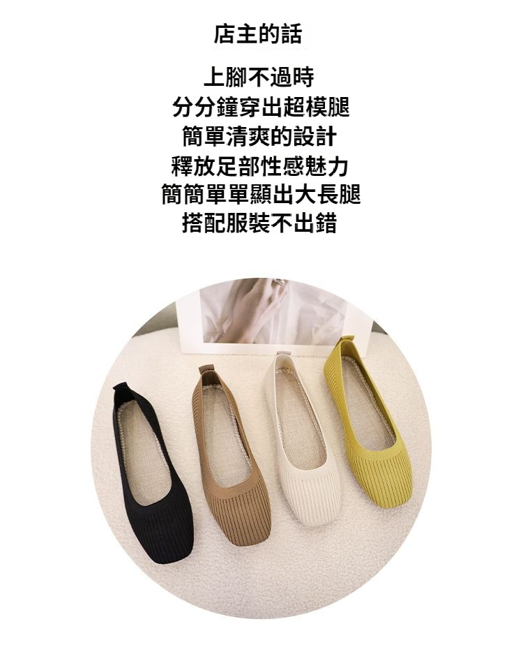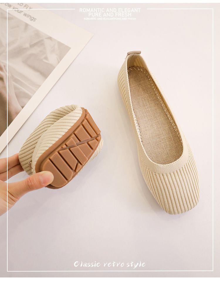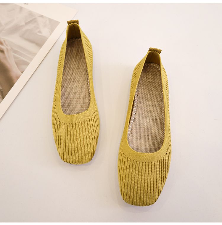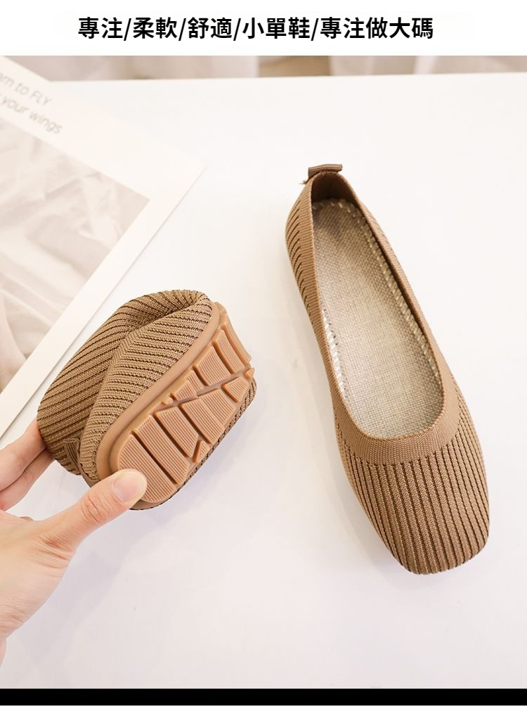 第 2 件 : 針織單鞋女春夏2026新款一腳蹬豆豆方頭淺口飛織平底透氣軟底單鞋