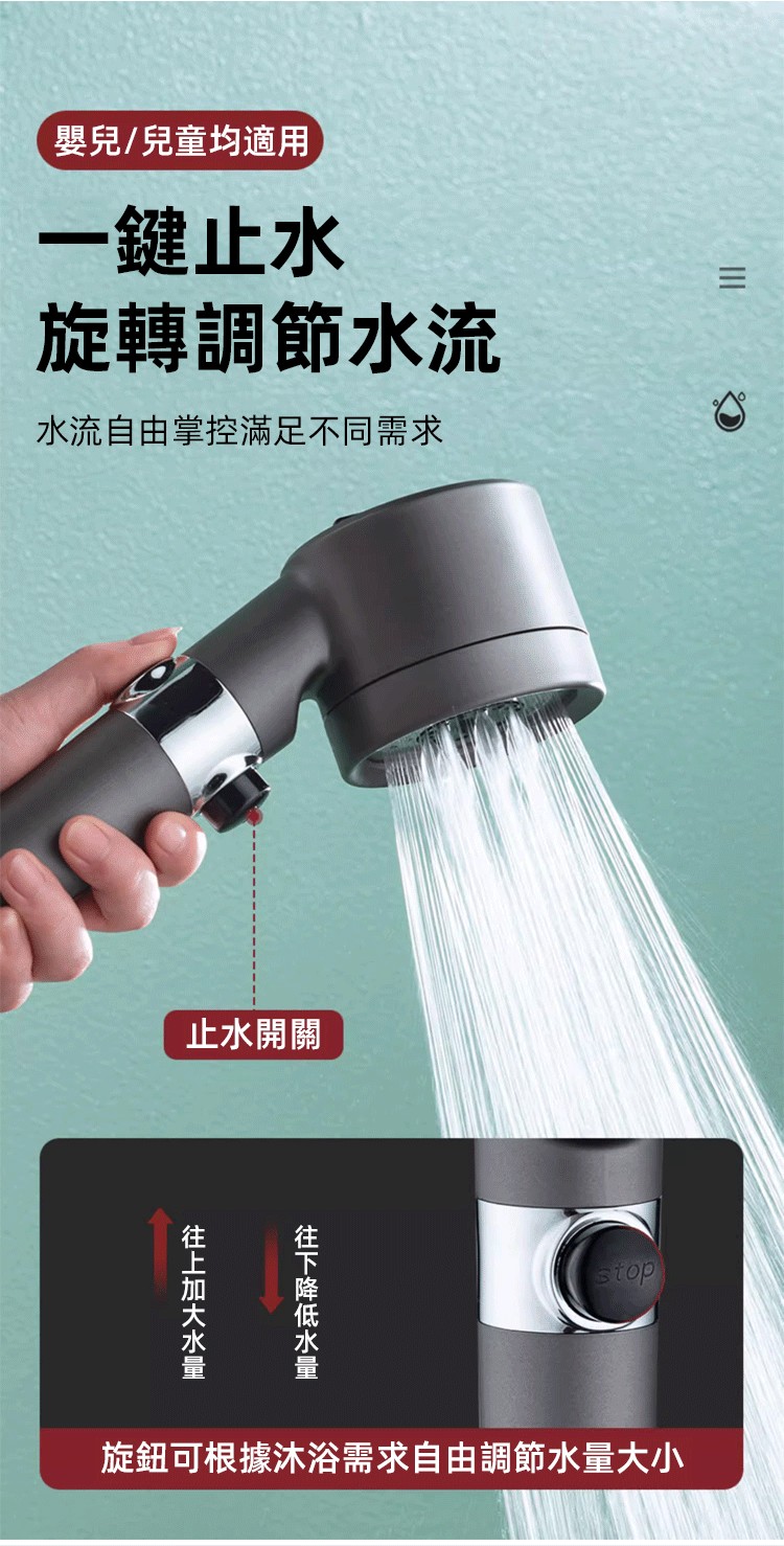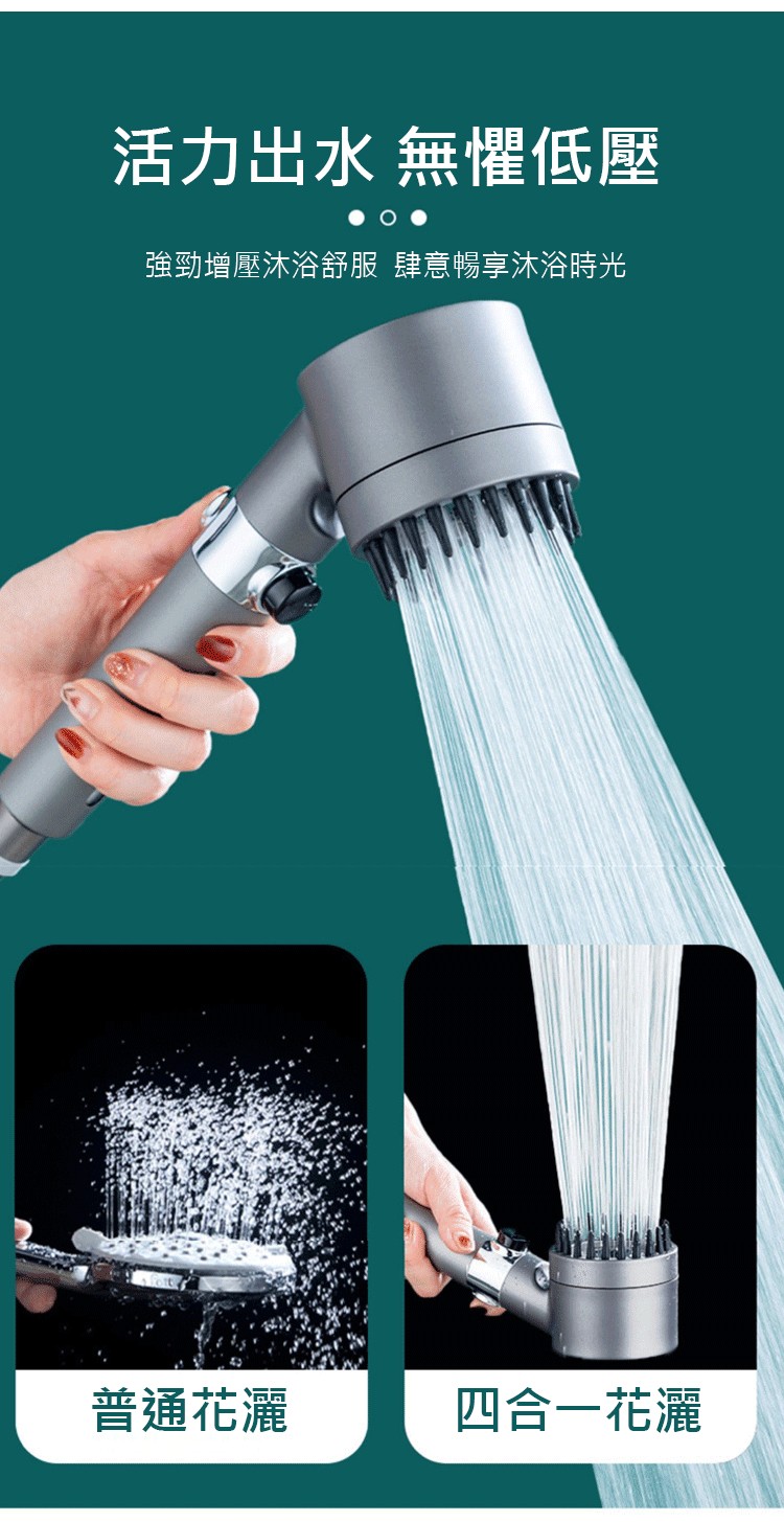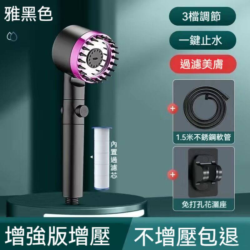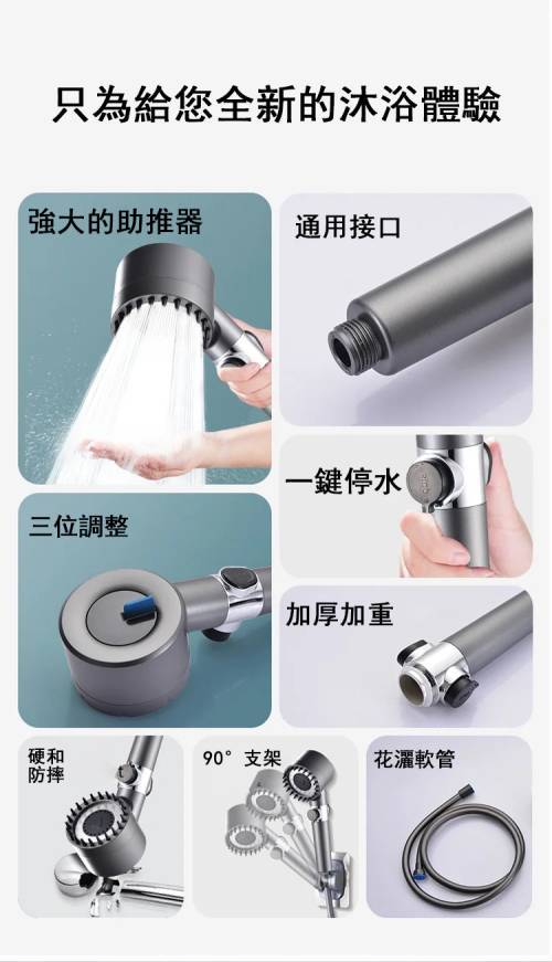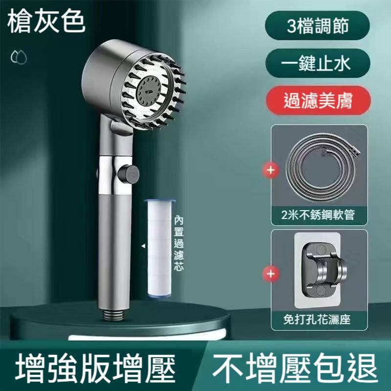 限時搶購【按摩多功能花灑】增壓、過濾、美膚、按摩頭皮四合一花灑!三檔出水模式,在家享受水療(下單就送:1.5米軟管+支架) 水柱超集中,一鍵切換按摩/雨淋/節水模式 \掉髮救星,頭皮按摩超舒壓 \寶寶洗澡,溫柔模式不哭鬧 \寵物美容,毛孩洗澡超享受 \省水30%,水費直接少一半