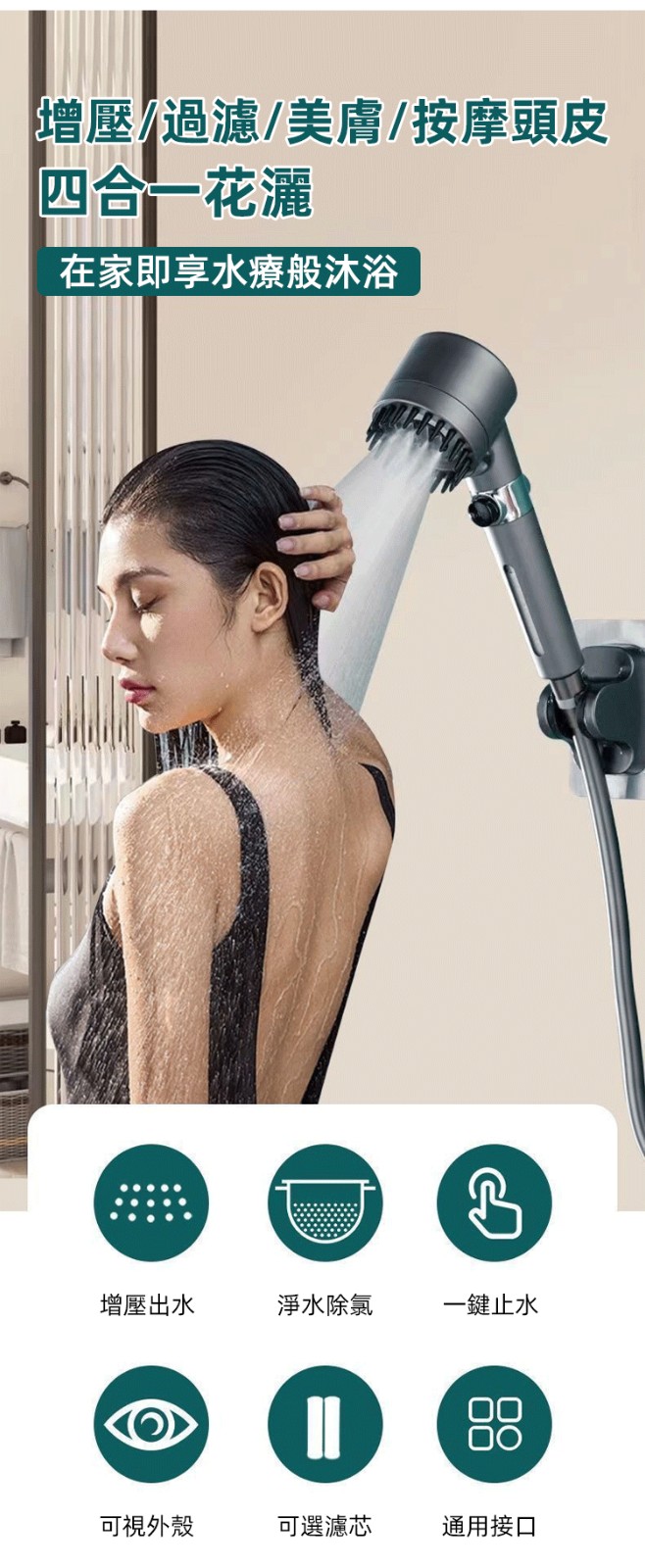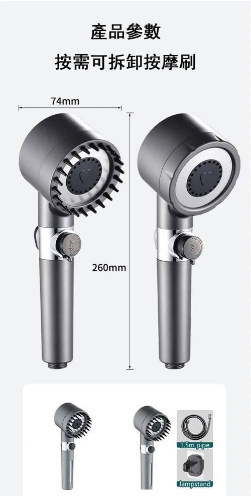第 4 件 : 限時搶購【按摩多功能花灑】增壓、過濾、美膚、按摩頭皮四合一花灑!三檔出水模式,在家享受水療(下單就送:1.5米軟管+支架) 水柱超集中,一鍵切換按摩/雨淋/節水模式 \掉髮救星,頭皮按摩超舒壓 \寶寶洗澡,溫柔模式不哭鬧 \寵物美容,毛孩洗澡超享受 \省水30%,水費直接少一半
