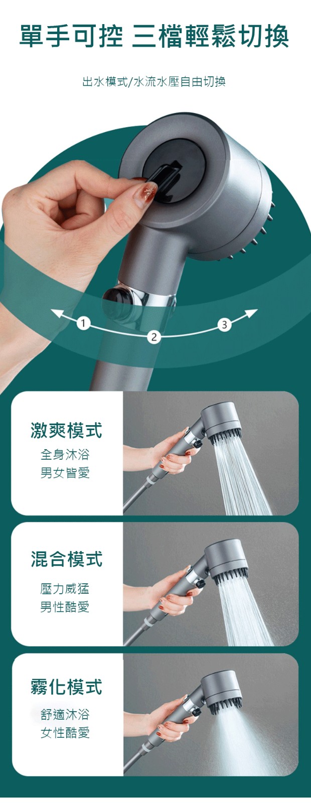 第 3 件 : 限時搶購【按摩多功能花灑】增壓、過濾、美膚、按摩頭皮四合一花灑!三檔出水模式,在家享受水療(下單就送:1.5米軟管+支架) 水柱超集中,一鍵切換按摩/雨淋/節水模式 \掉髮救星,頭皮按摩超舒壓 \寶寶洗澡,溫柔模式不哭鬧 \寵物美容,毛孩洗澡超享受 \省水30%,水費直接少一半