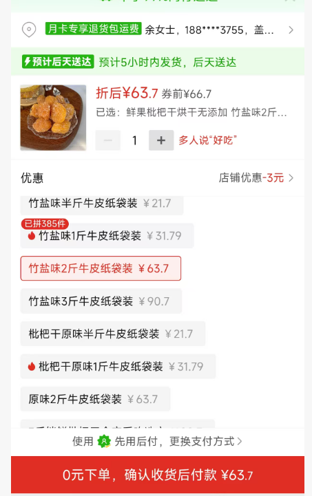 ②金農偉竹鹽枇杷乾2袋(每袋500g)63.7元