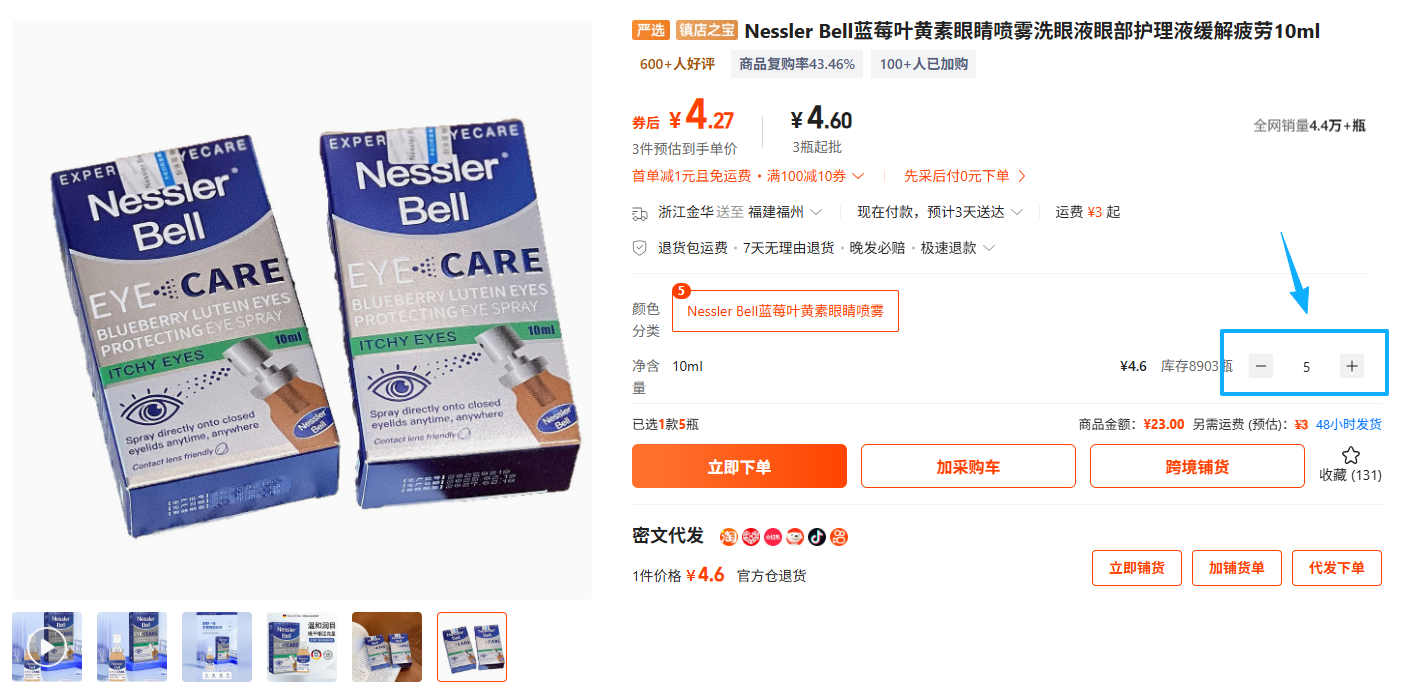 【Nessler Bell蓝莓叶黄素眼睛喷雾洗眼液眼部护理液缓解疲劳10ml】复制¥5j64gCC00IHau¥,打开【手机阿里】或【支付宝-点首页进行搜索】查看:https://qr.1688.com/s/h8CWow8A CZ6214
