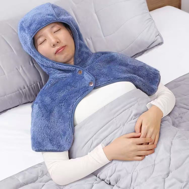 第 5 件 : 睡覺肩頸保暖帶帽護頭坎肩珊瑚絨披肩玩手機護肩短外套女潮