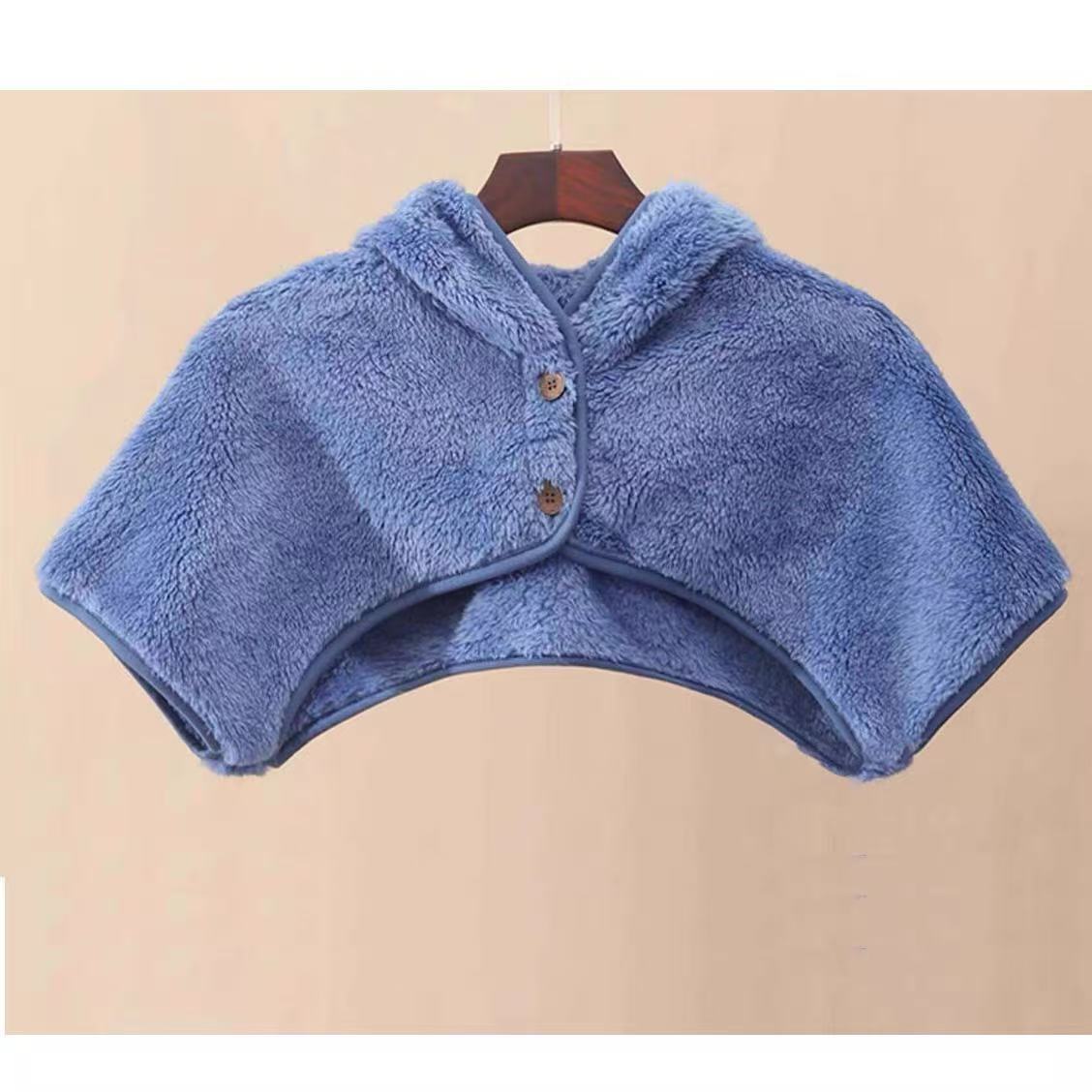 第 2 件 : 睡覺肩頸保暖帶帽護頭坎肩珊瑚絨披肩玩手機護肩短外套女潮