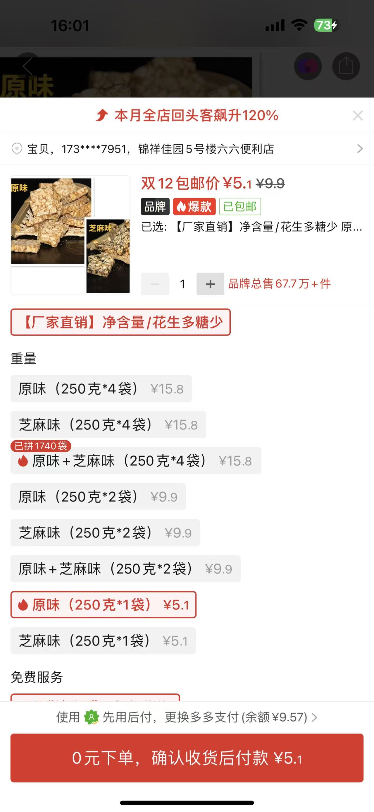 ②花生糖原味250g1袋(5.1元)https://mobile.yangkeduo.com/goods.html?ps=U5QsnNgjkM