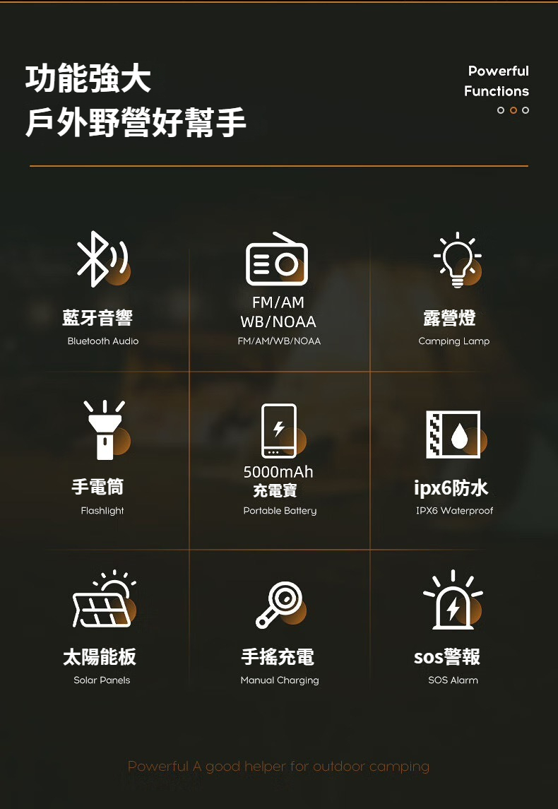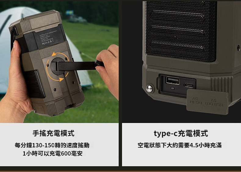 多功能戶外藍牙音箱露營燈氣氛帳篷燈緊急應變手搖發電收音機防災裝備