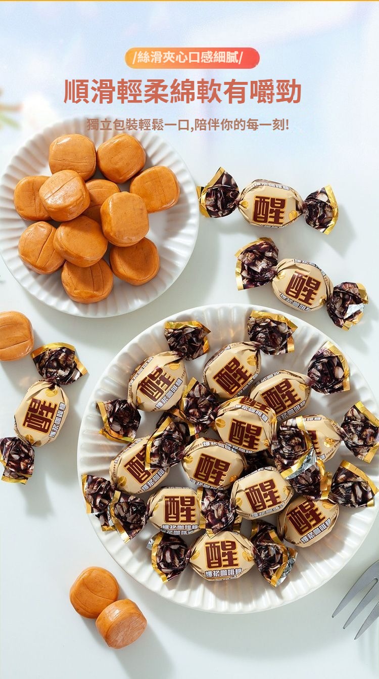 爆漿夾心咖啡太妃糖、臉書同款,外層是軟糯到拉絲的太妃糖,帶著恰到好處的奶香與焦糖甜,輕輕一咬,醇厚絲滑的咖啡流心就瞬間在舌尖迸發。微苦的咖啡風味中和了太妃的甜膩,甜與苦的平衡拿捏得剛剛好,每一口都是層次豐富的味覺驚喜 NT$ 890