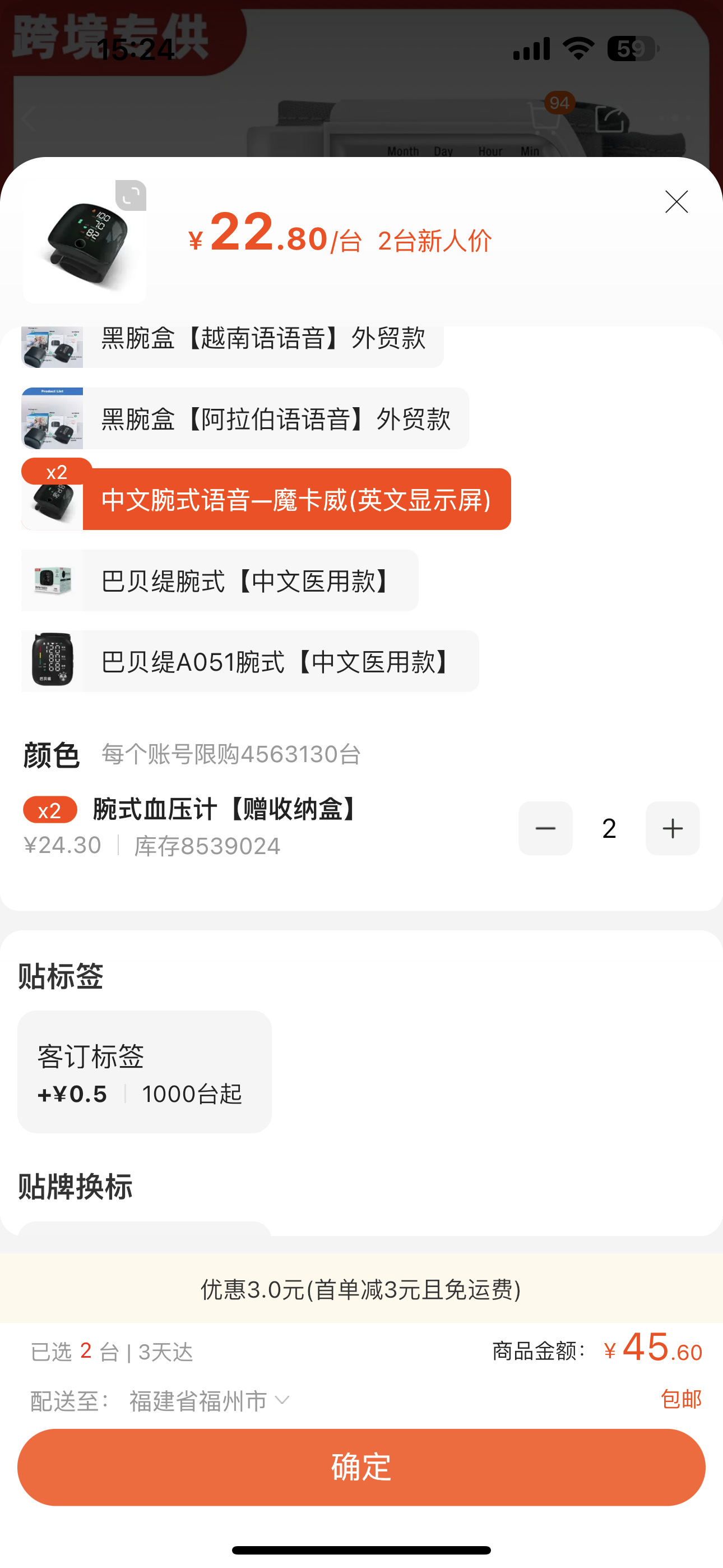 林心慈寄腕式血壓計2個
