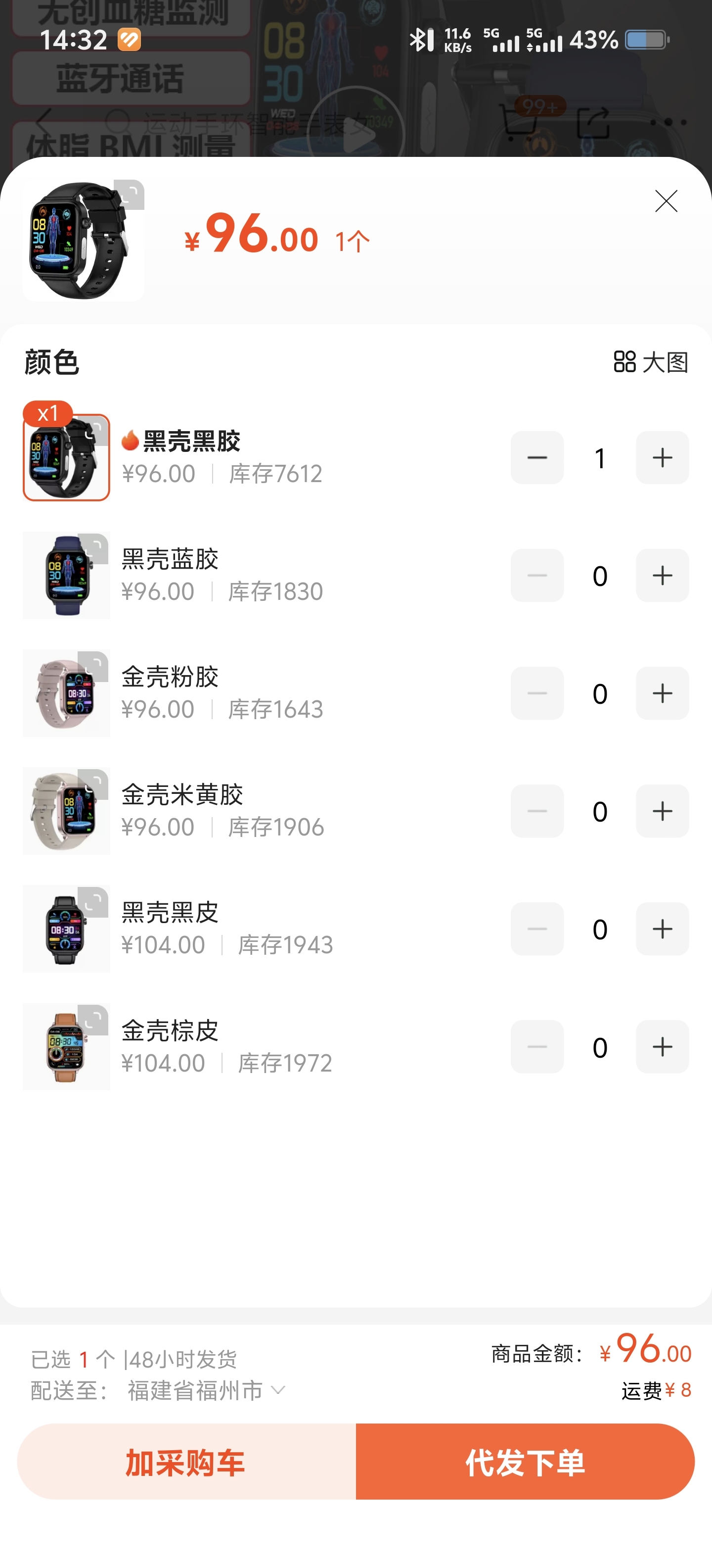 血糖手表黑色【一個】(寄到陽光城)https://qr.1688.com/s/mAAp7ial
