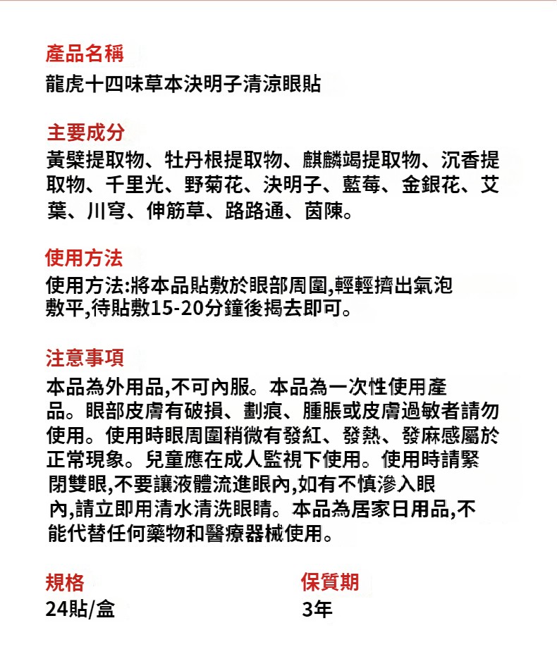 龍虎草本潤目貼清涼眼貼冷敷學生決明子十四味草本萃取緩解眼部疲勞 NT$ 899