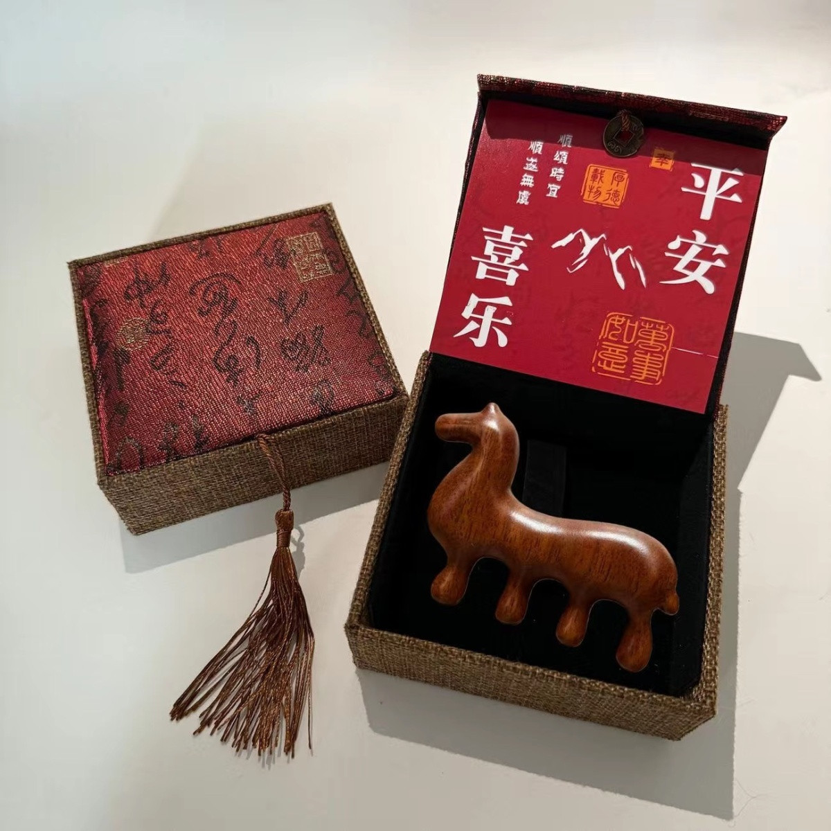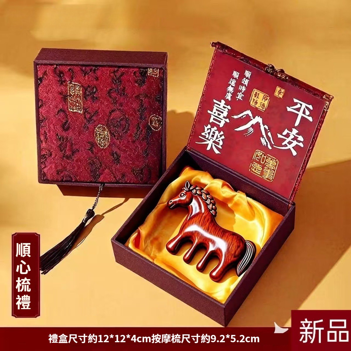 馬到成功+金絲檀木唐馬按摩梳【禮盒裝】