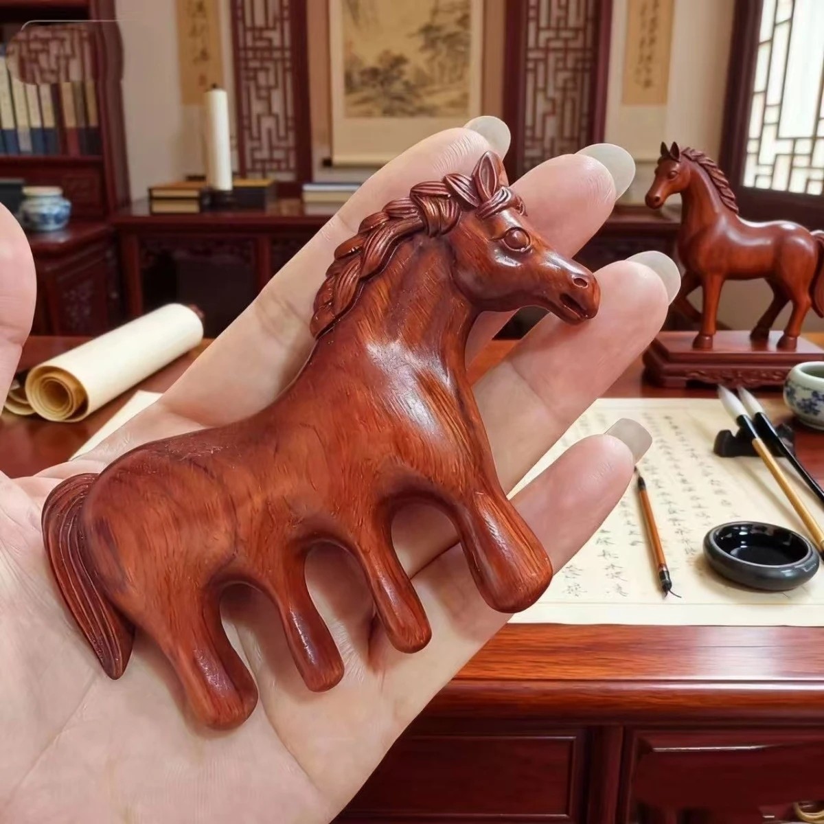 馬到成功+紫檀木駿馬按摩梳【禮盒裝】