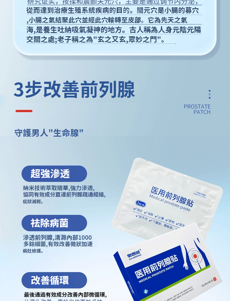 奧朗威醫用攝護腺貼片慢性攝護腺炎頻尿急穴位貼官方正品