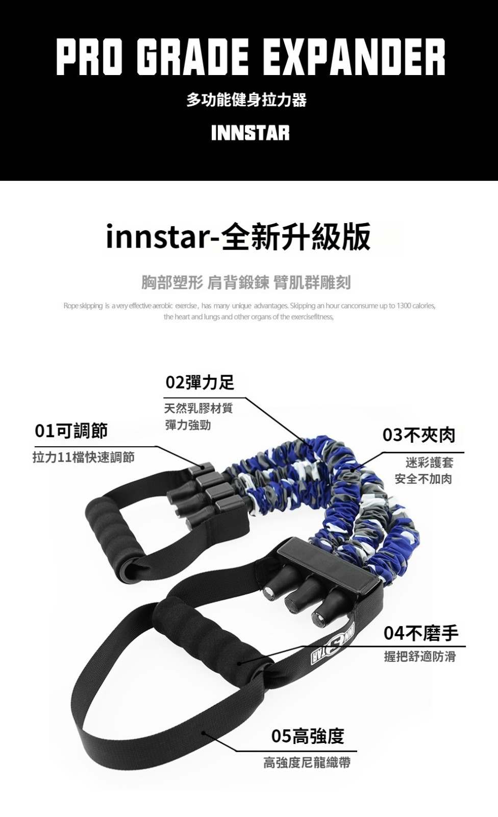 INNSTAR擴胸器拉力器可調式擴胸器拉力繩胸肌臂力器訓練